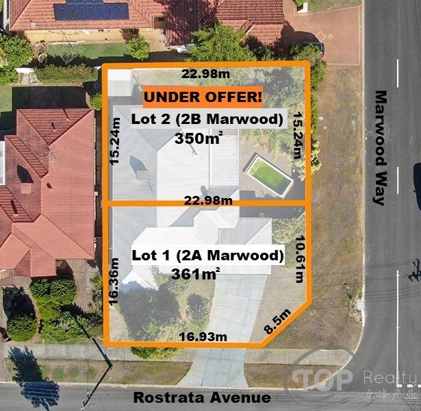 The survey strata titled block has an area of 361 sqm and wide frontages on both Marwood Way and Rostrata Av (subject to council approval).  There are NO strata levies.