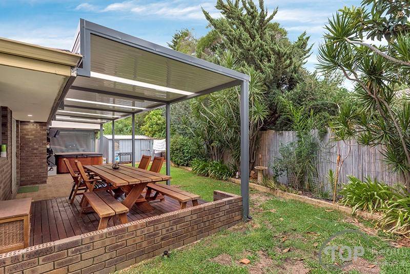 Large backyard with timber decked patio area for entertaining (Note: outdoor spa not included in sale)