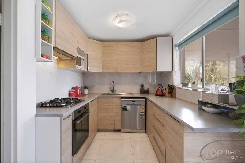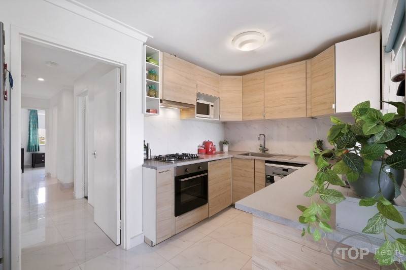Renovated kitchen comes equipped with gas cook top & dishwasher