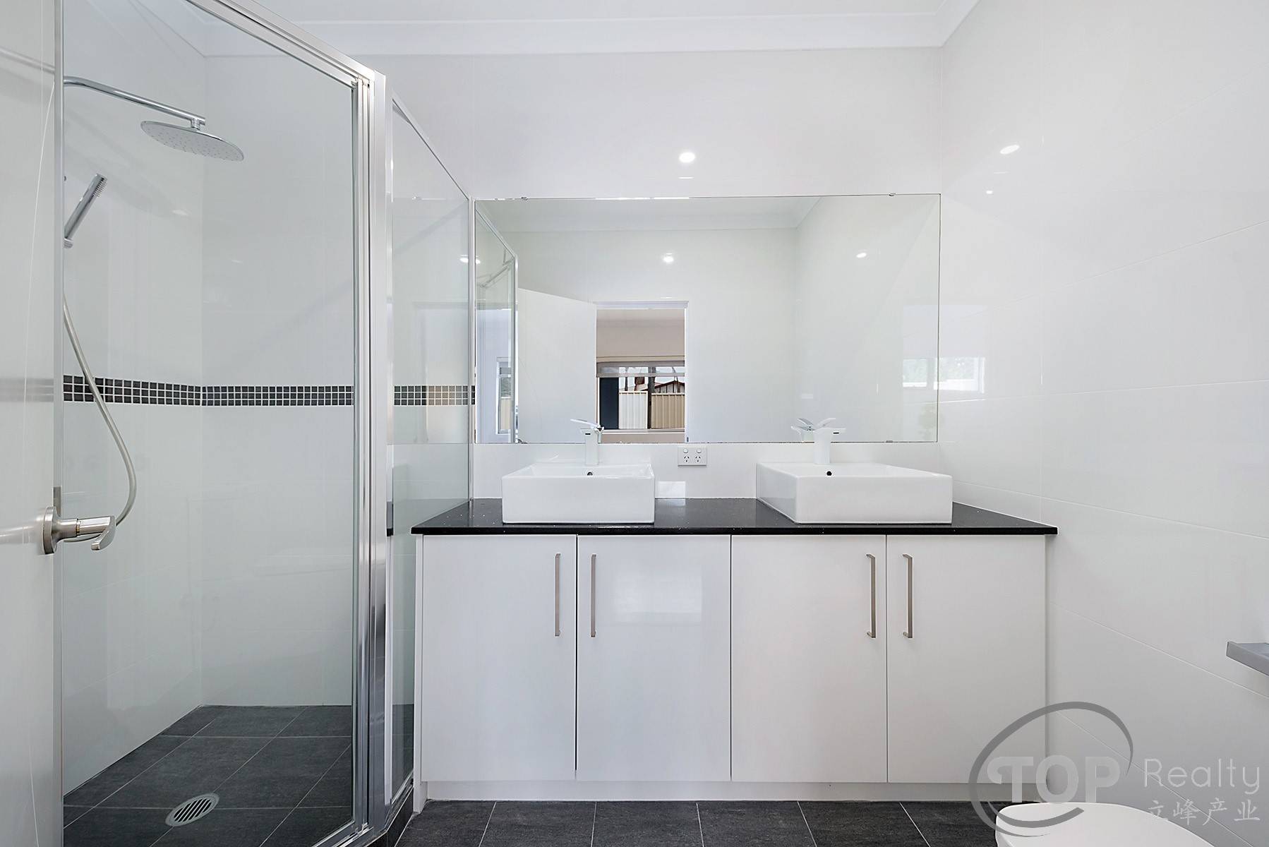 Large main bedroom with large build-in robe and en-suite with double stone top vanity