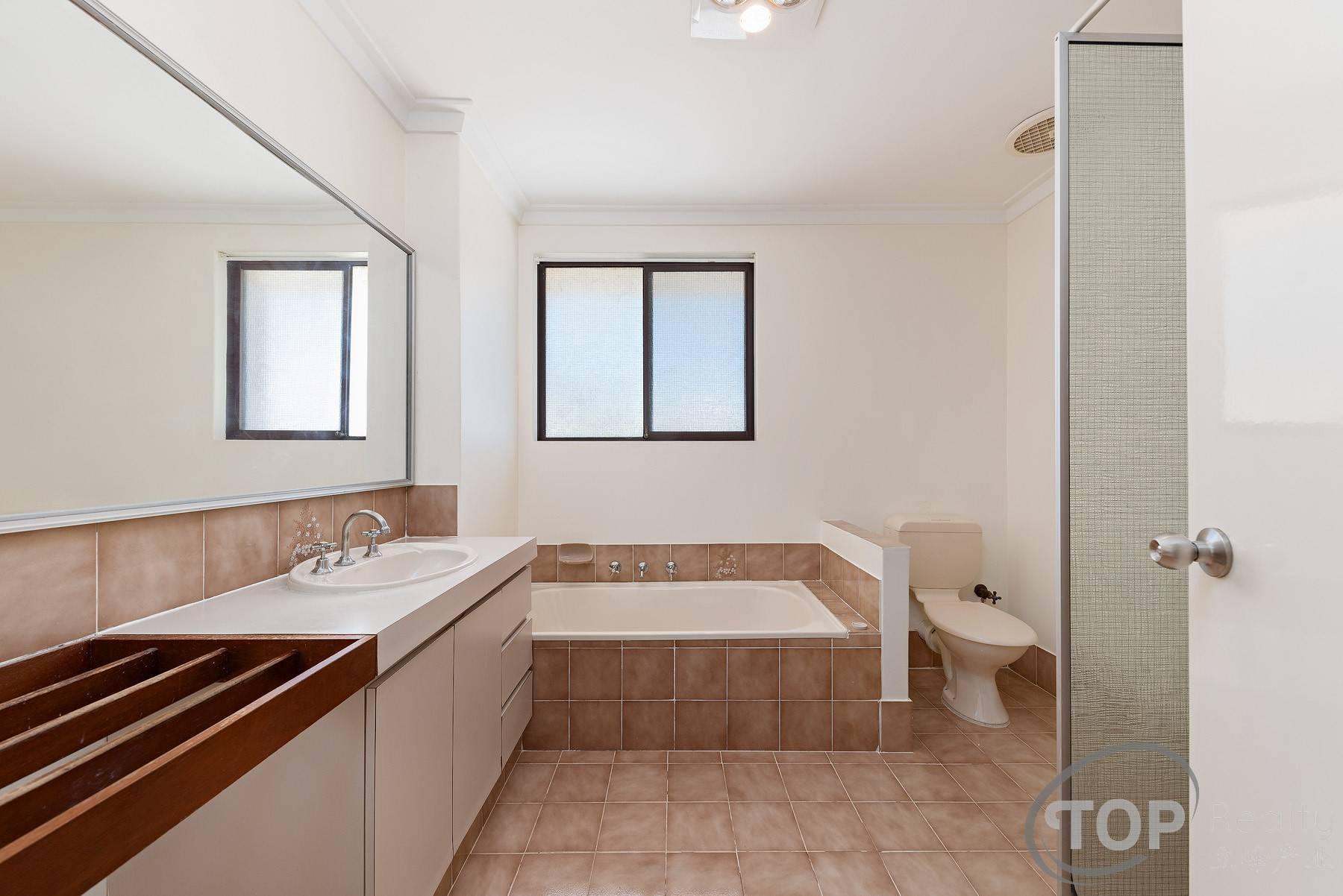 Large common bathroom with bath, shower & toilet