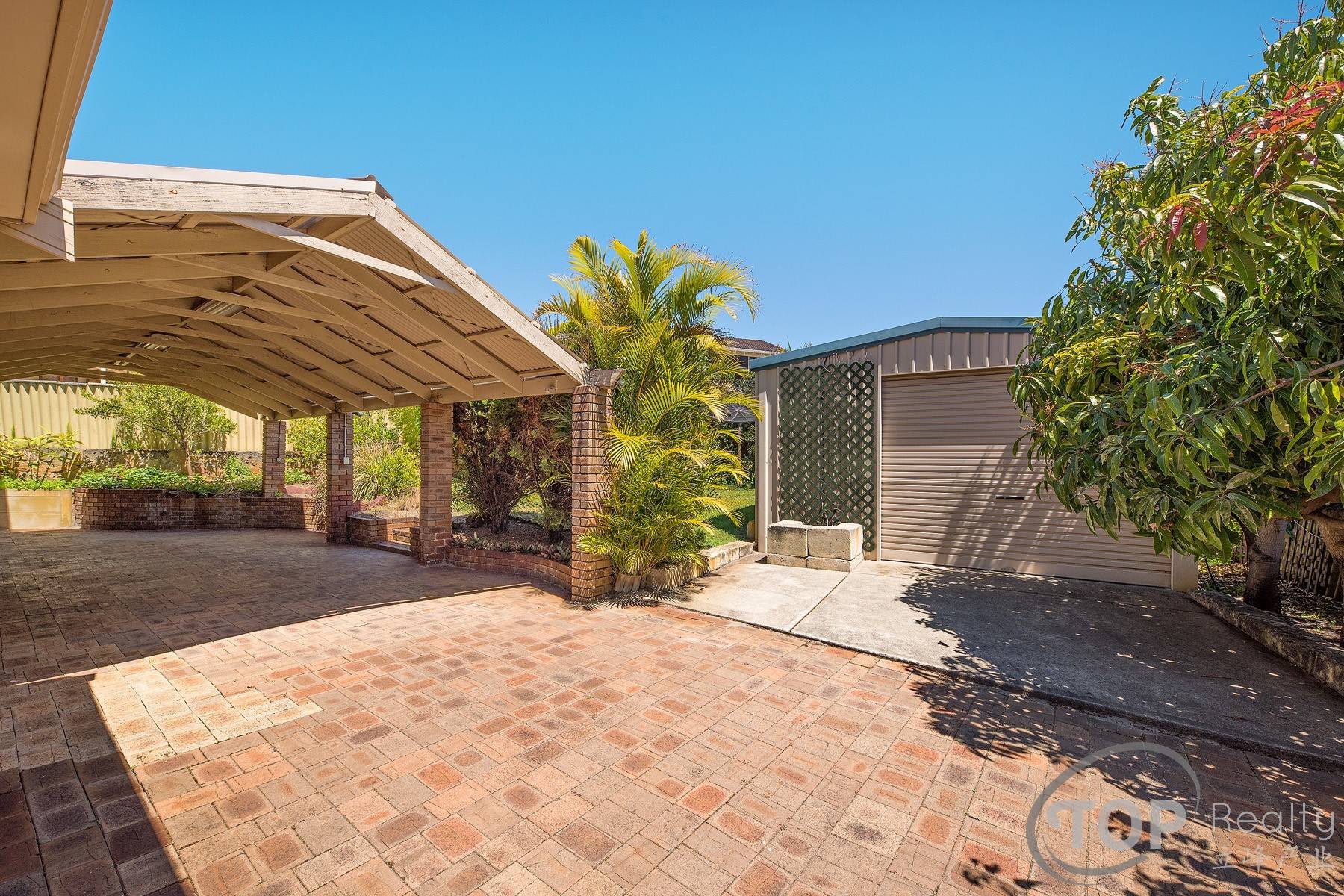 The easy care backyard features a large pitched pergola perfect for outdoor living and entertaining, and a triple enclosed carport plus a large powered shed or 4th garage.