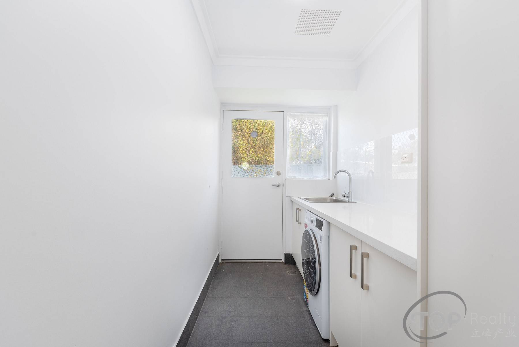 Renovated laundry equipped with stone bench top; washer dryer included in sale