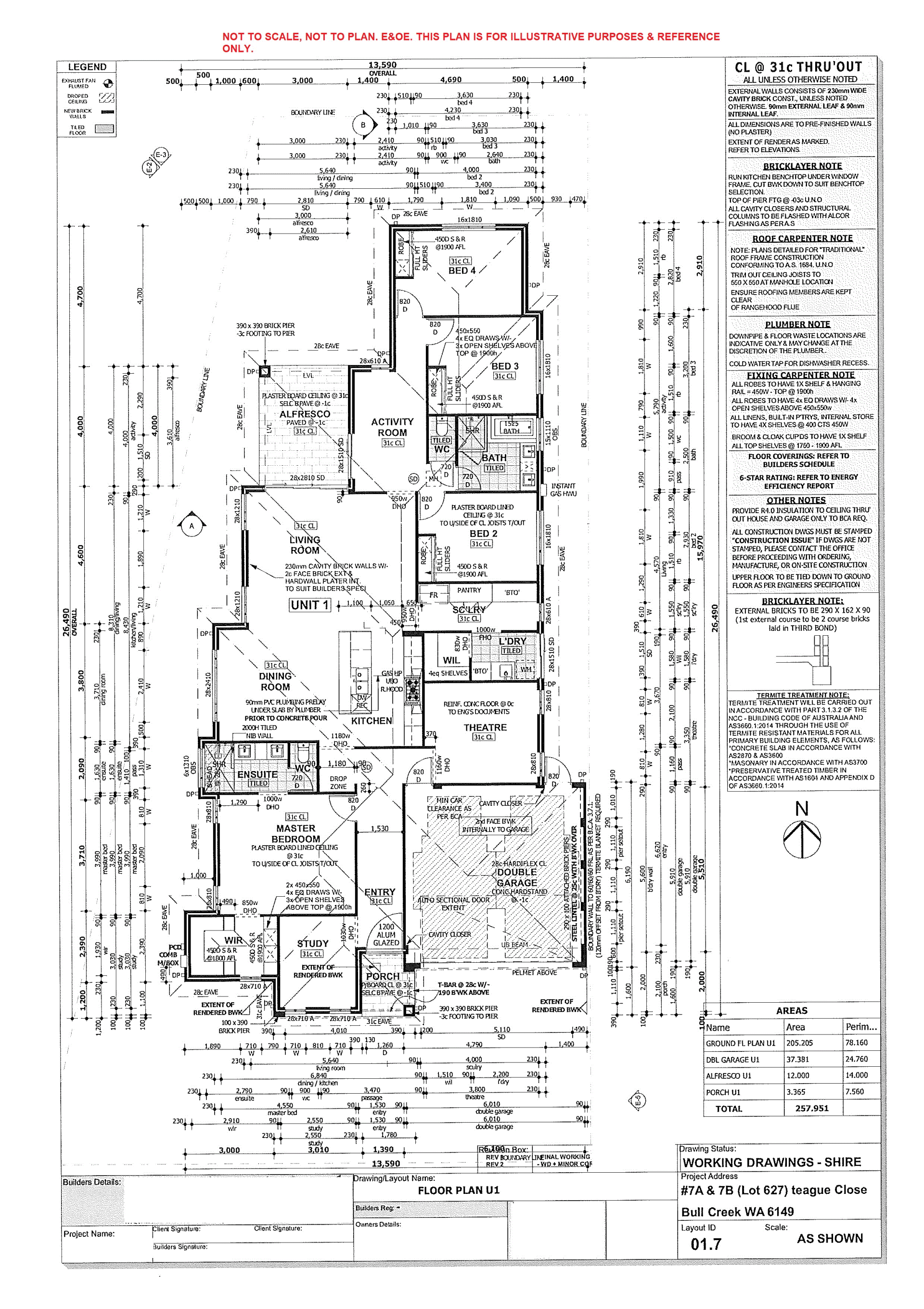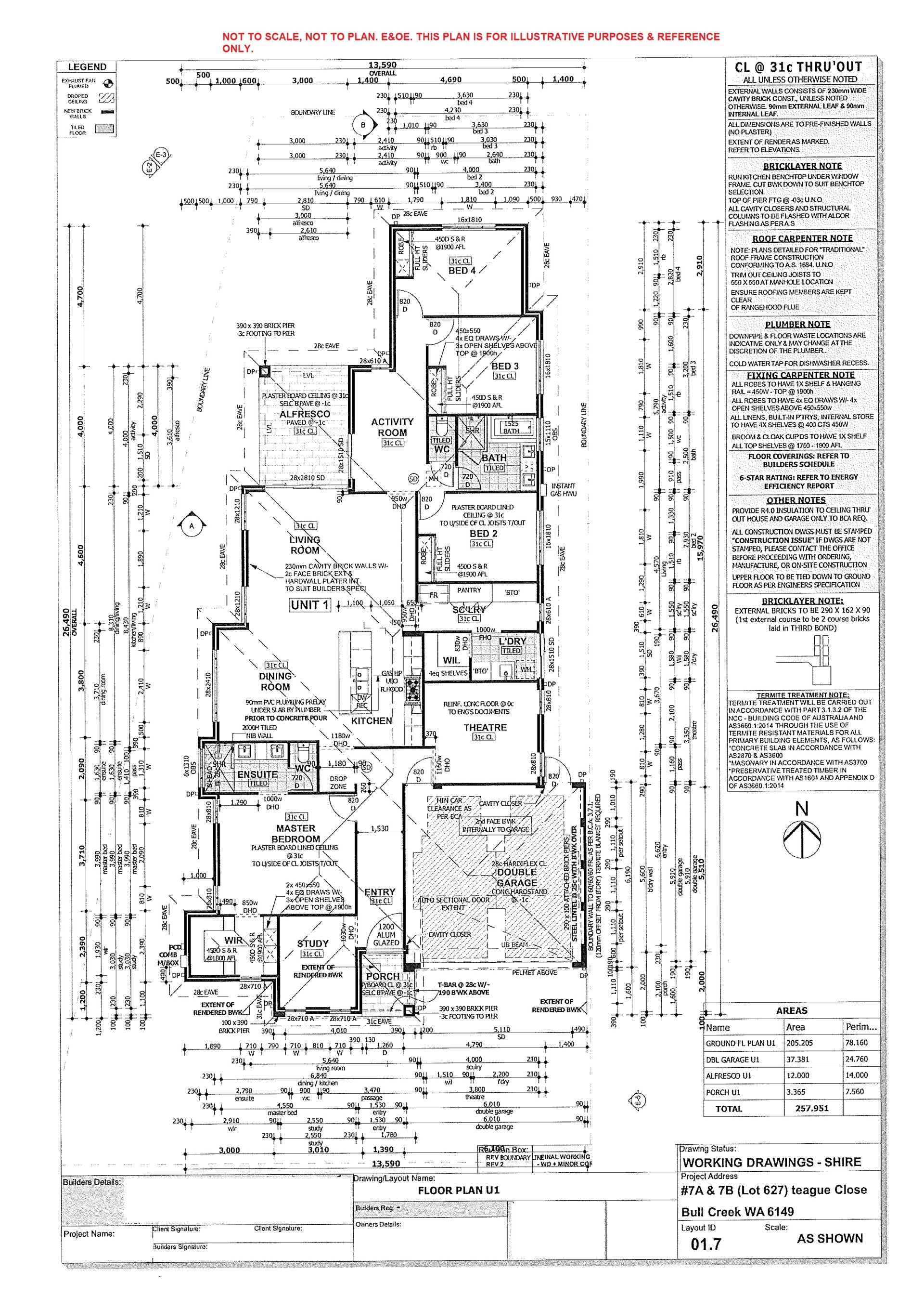 There are many upgrades added to the build including 31 course high ceilings to most areas, double glazed windows for added insulation and full height wall tiling to bathrooms. The house has a well thought out floorplan with the study room to the front, theatre isolated from bedrooms and living, the activity room nestled around the kids’ wing, and the living room opens to the outdoor alfresco. The cook in the house will also appreciate the scullery to hide away the fridge and appliance clutter.