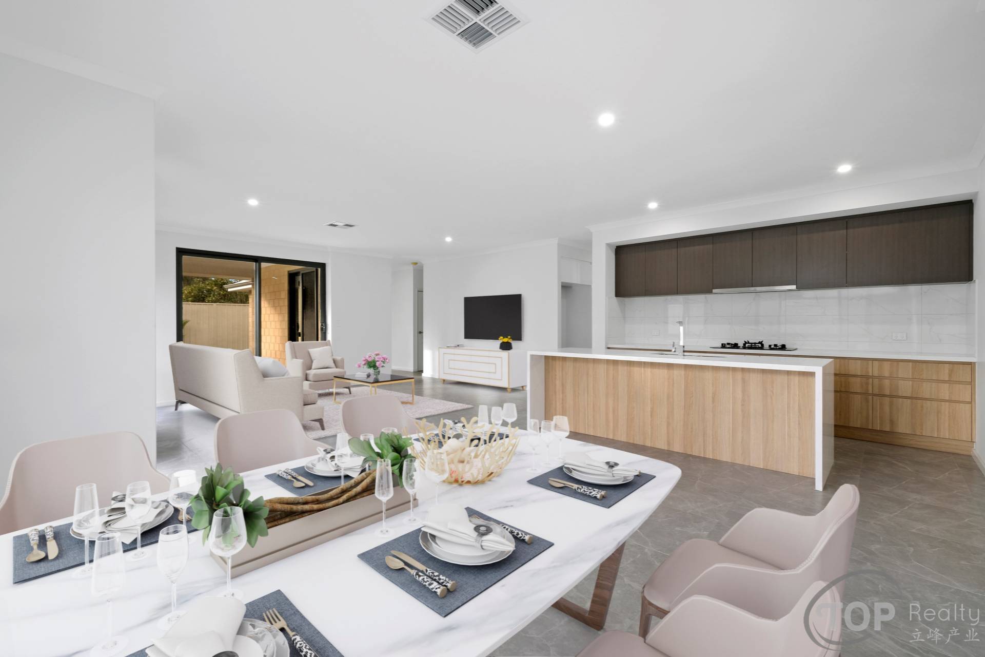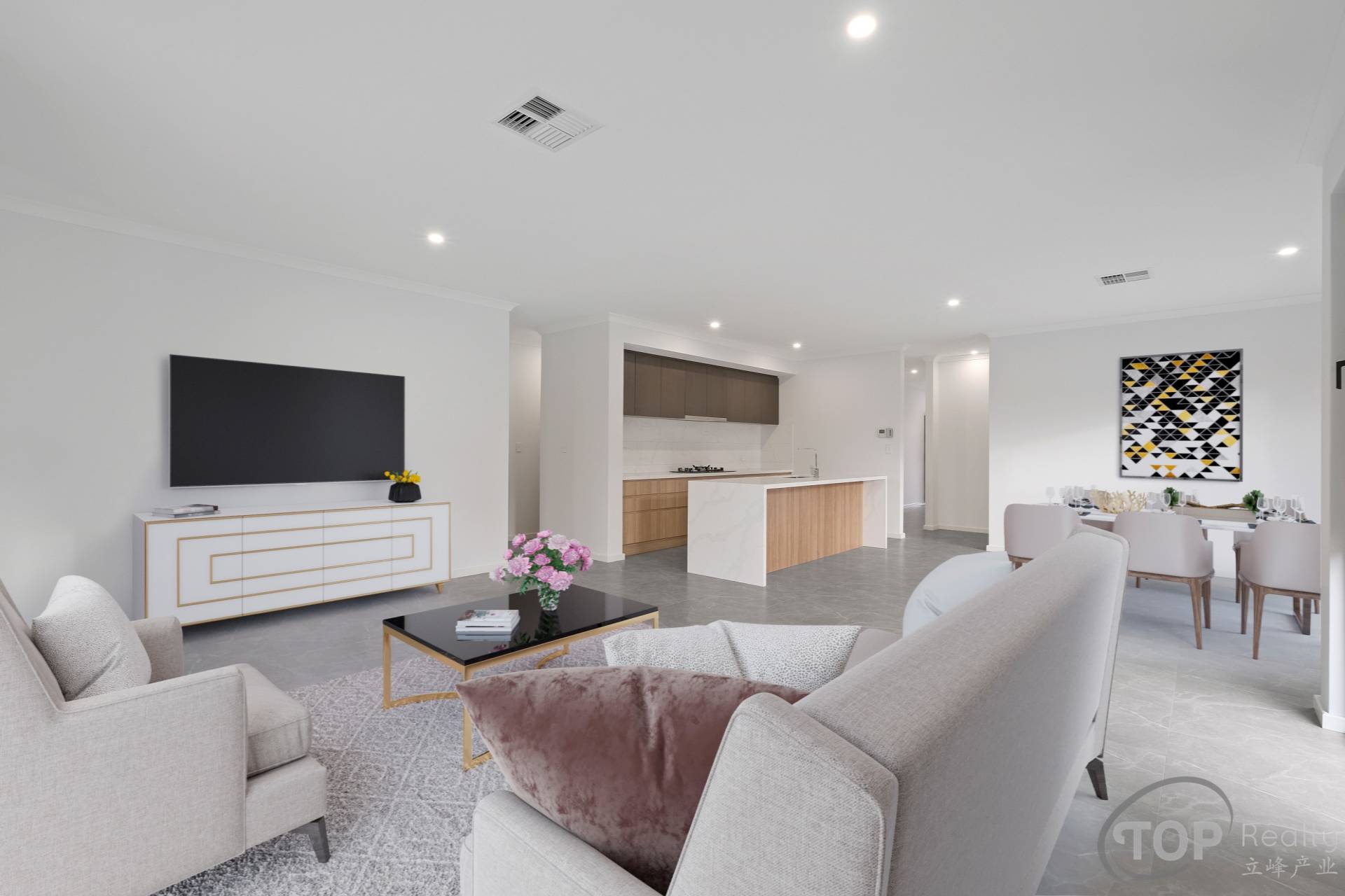 Open plan kitchen, dining & living area