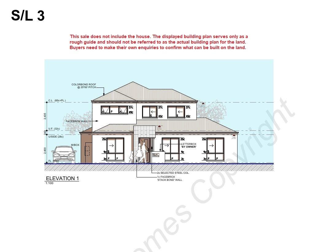 The depicted building plan serves only as a rough guide and should not be referred to as the actual building plan for the land. Buyers need to make their own enquiries to confirm what can be built on the land.