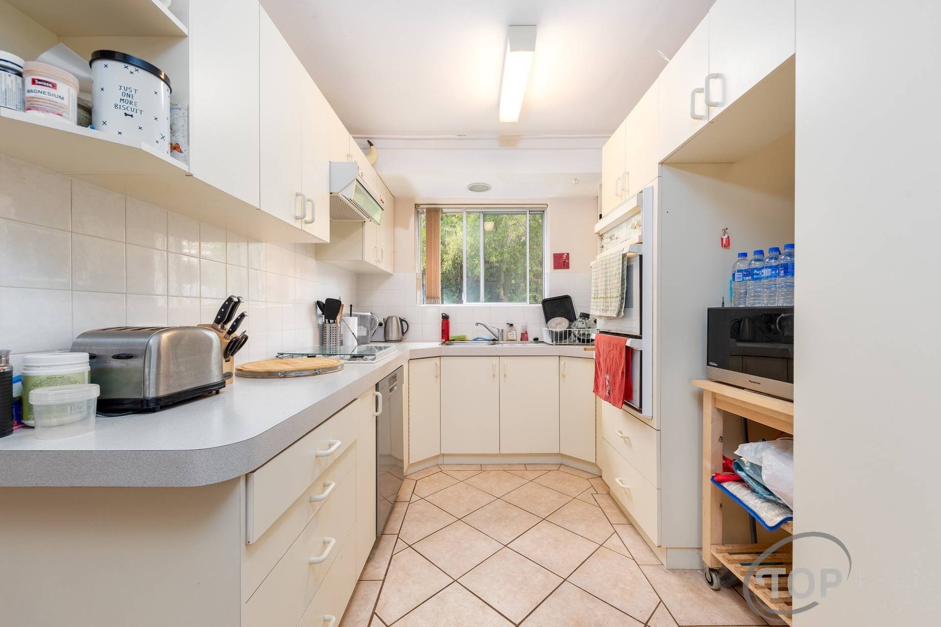 Kitchen well equipped with gas cook top & generous storage cabinets