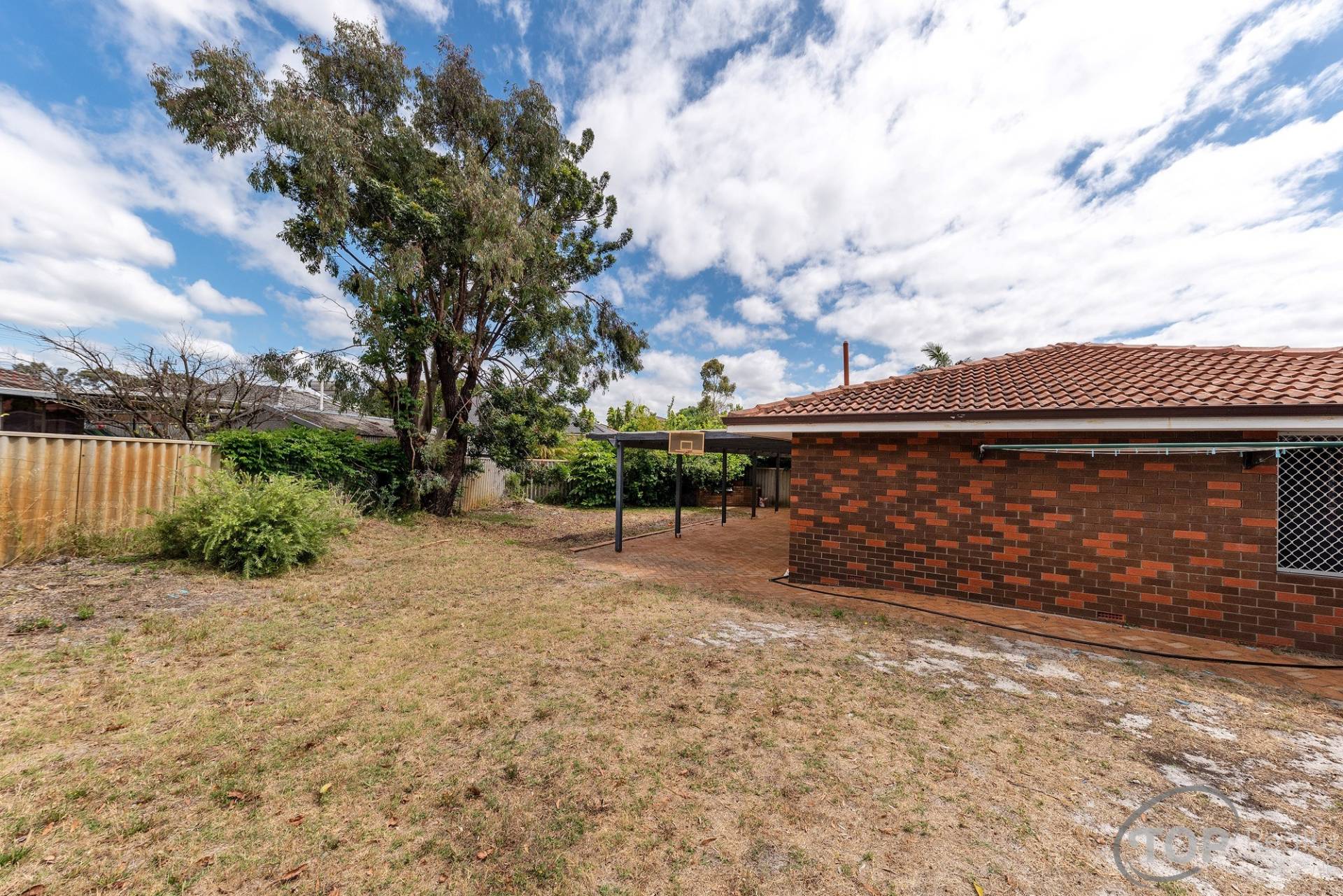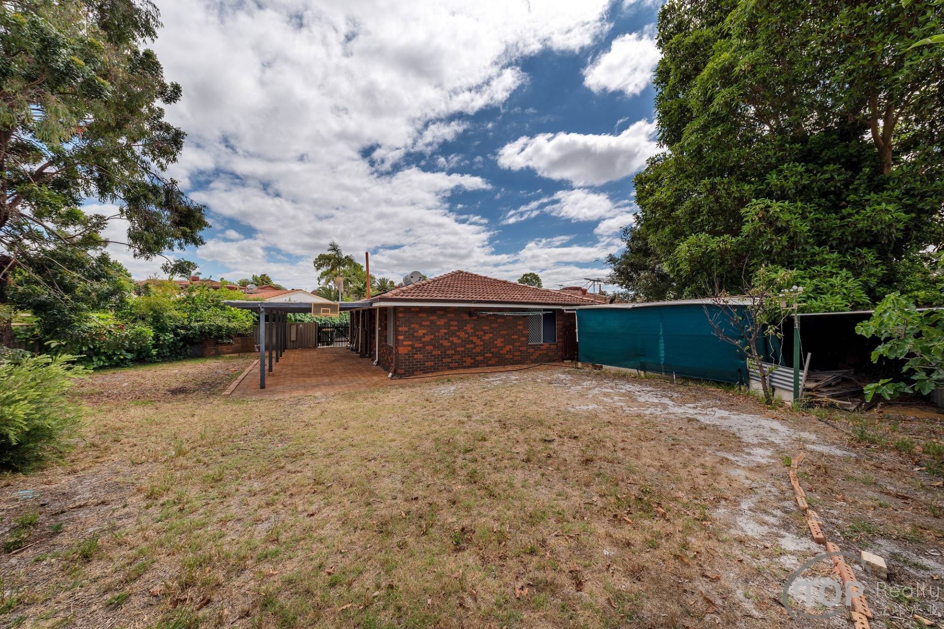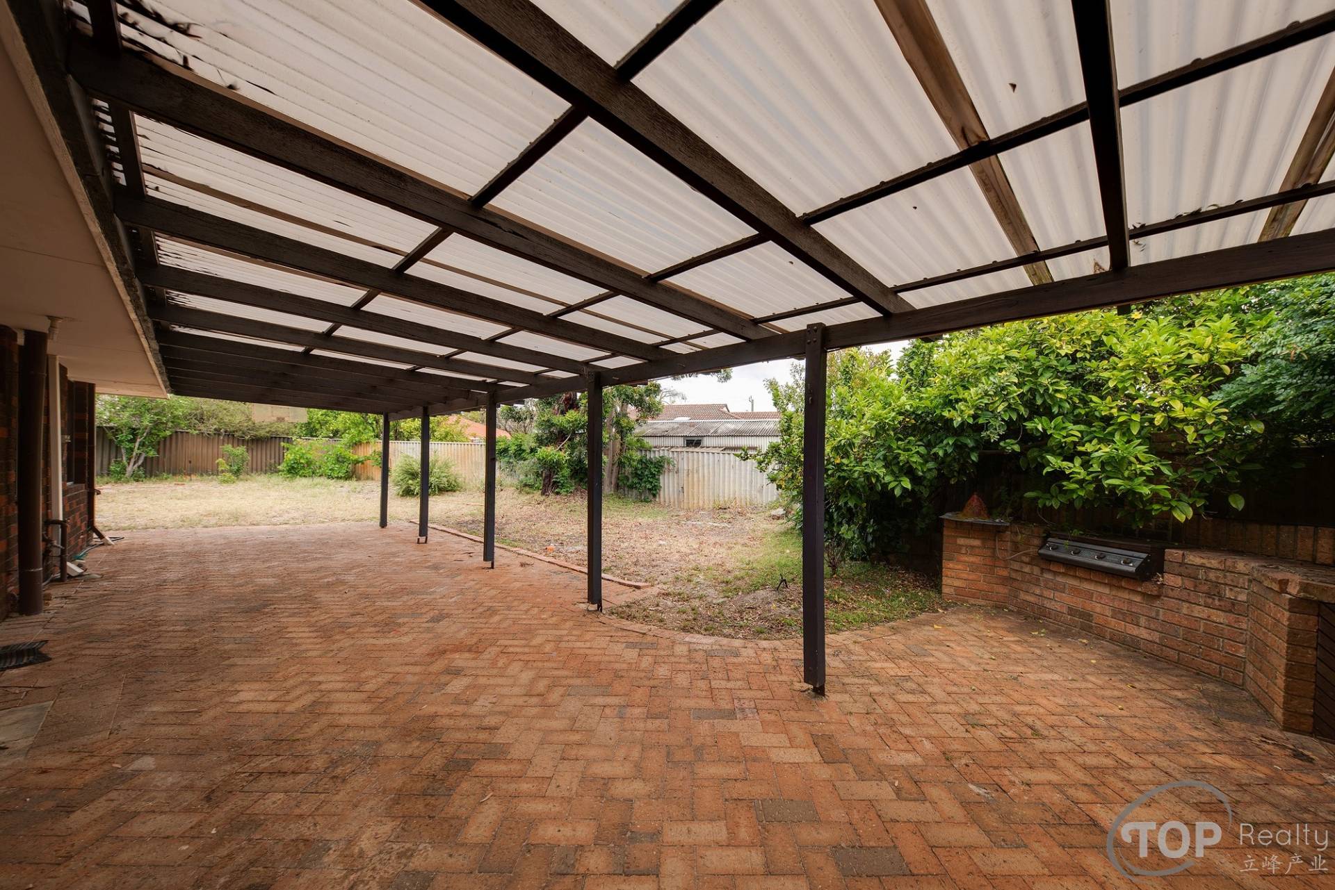 •    Large backyard with pergola for outdoor entertaining