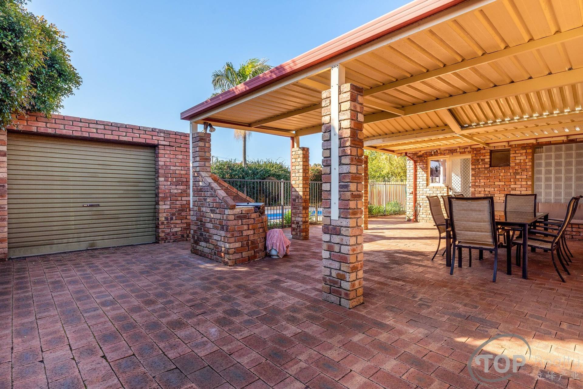 The backyard has a North facing aspect and the space has been well utilized to include a large pitched patio that can accommodate a large group of people, a below ground sparkling pool and a single garage or large shed for your tooling or additional storage needs.