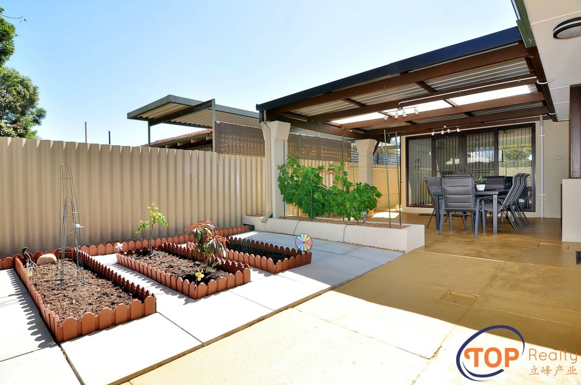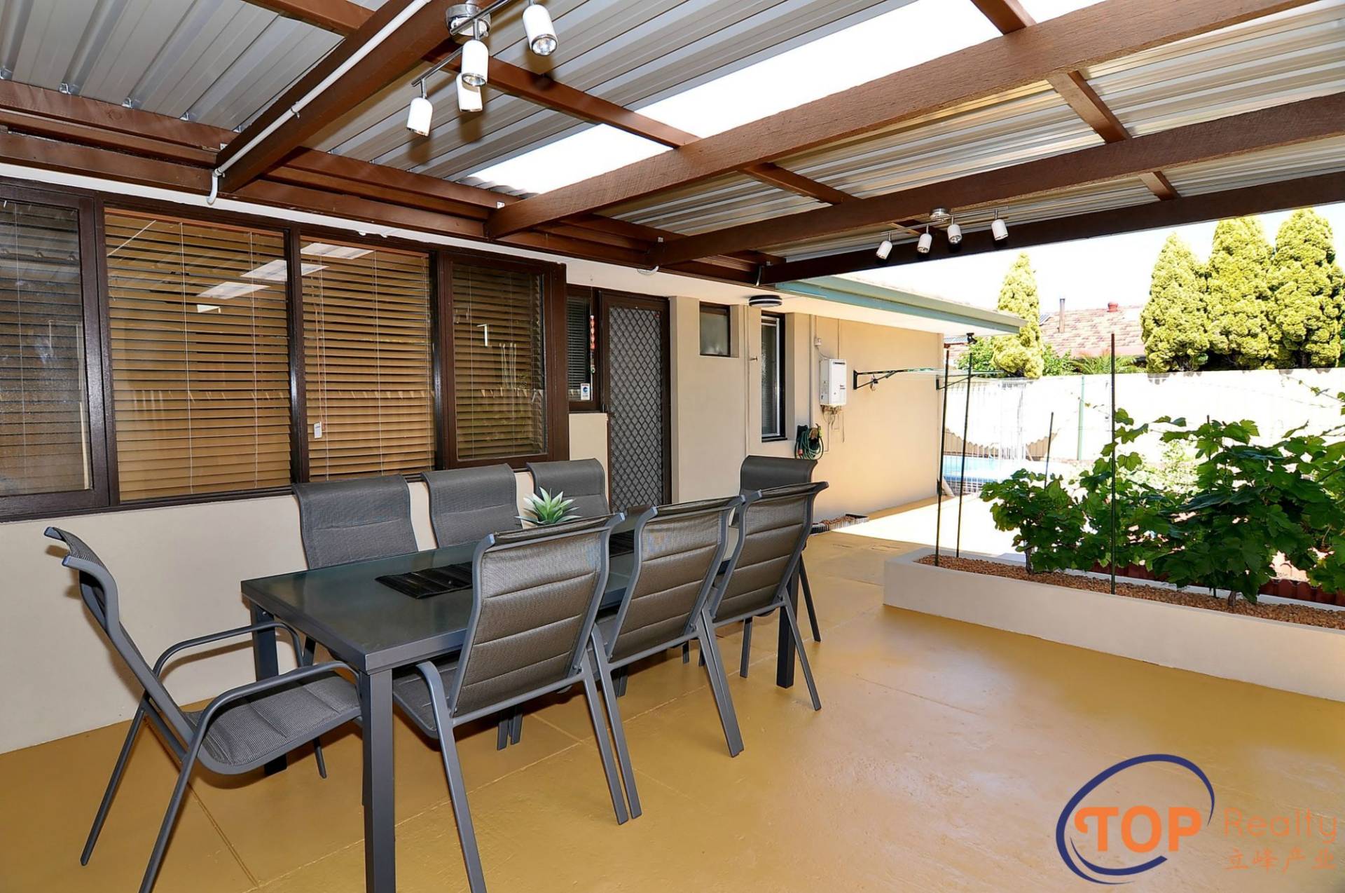 Large backyard with pergola for entertaining