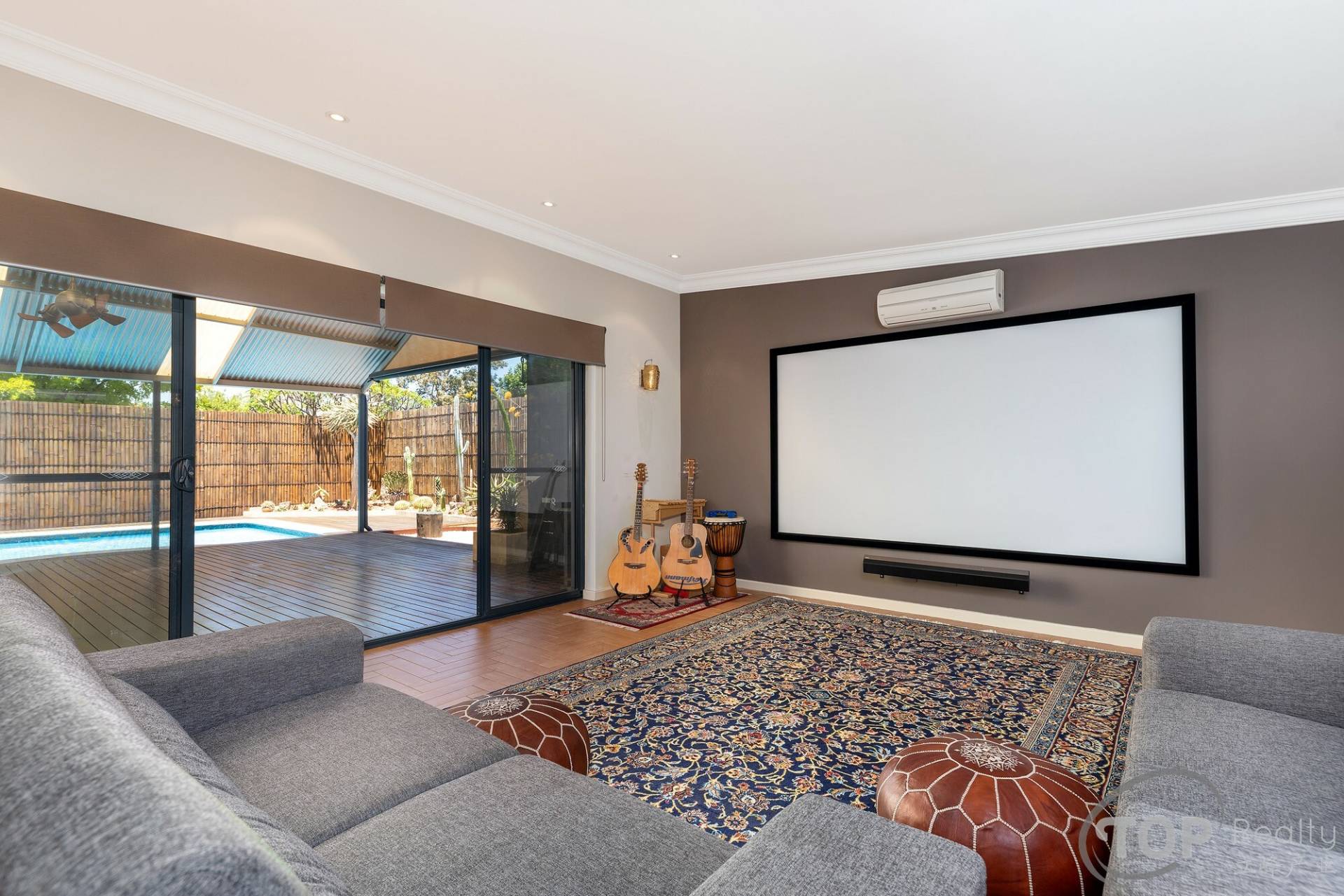 Family room set up as home theatre (AV equipment, projector & screen are included in sale)