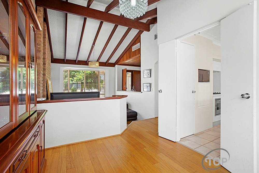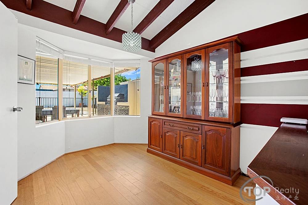 This fabulous home has a flexible floorplan that can cater to your needs. To the front, there is a lounge that comes with a fireplace and dining area. High raked ceiling here creates a sense of spaciousness. The dining area can be used as a study.