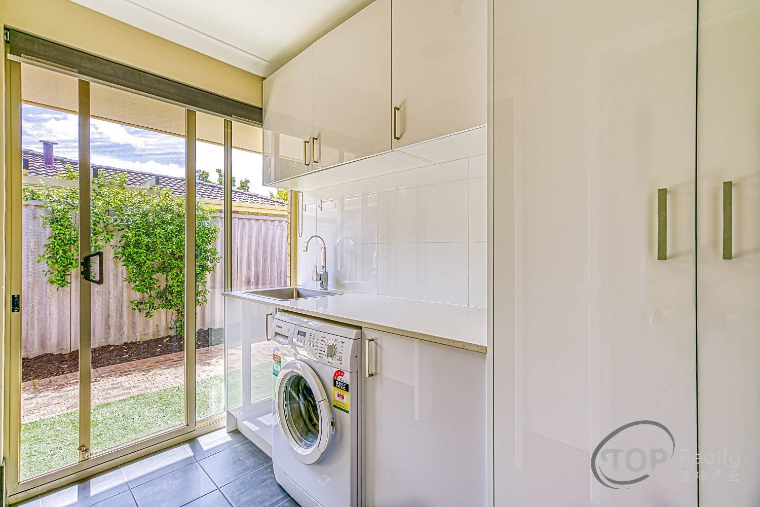 Laundry with stone benchtop, storage & wc