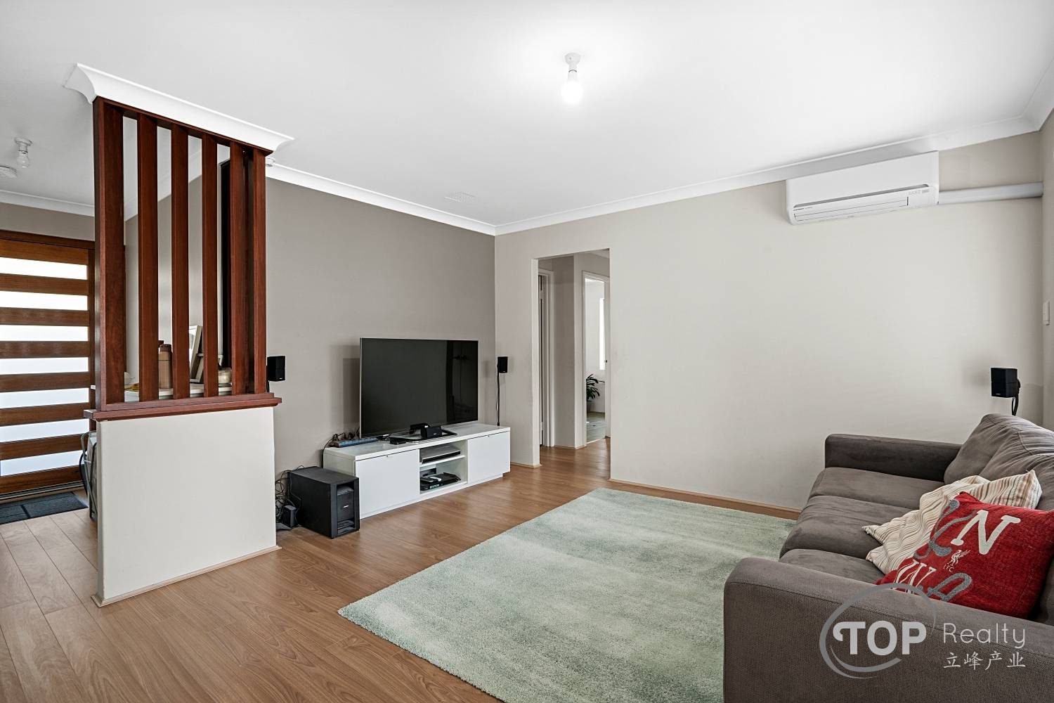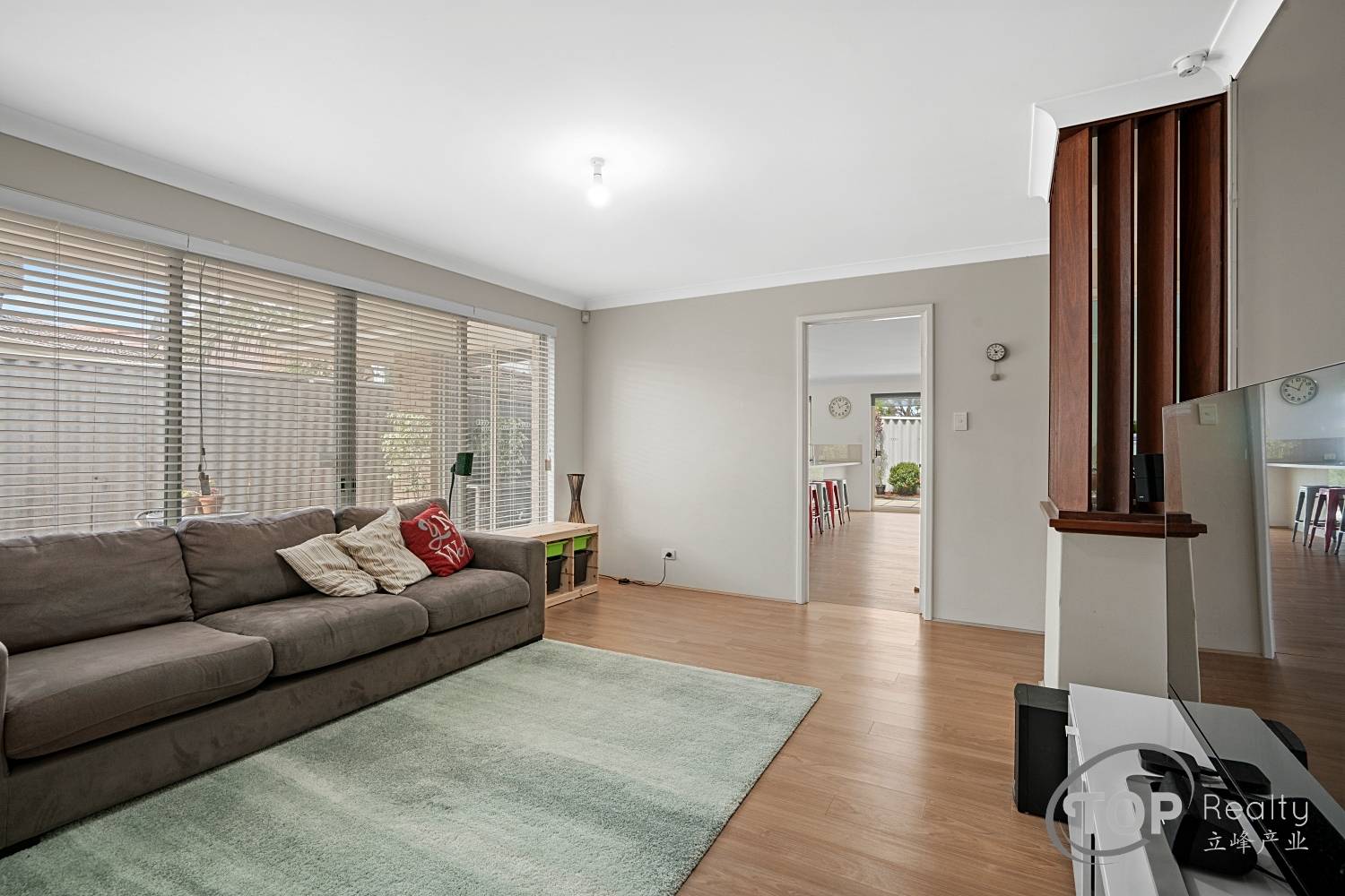 Open plan layout including kitchen, lounge & dining area with split r/c a/c