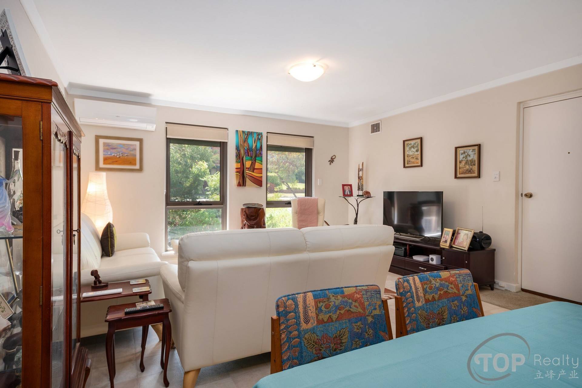 Spacious living & dining room; features split air con unit & gas bayonet for heating