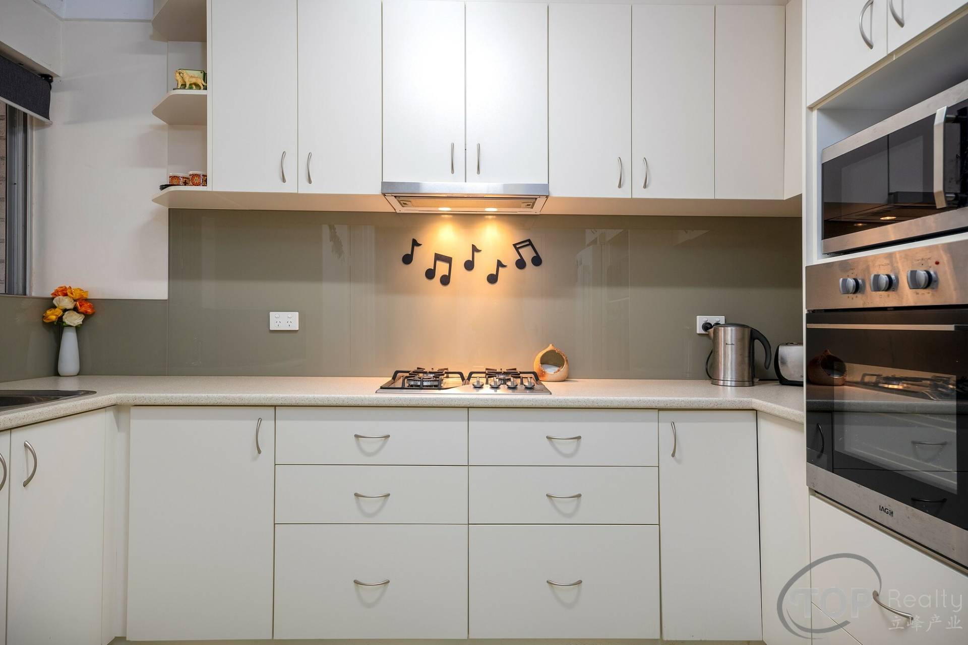 Renovated kitchen comes with gas cook top, generous storage cabinet & bench top space