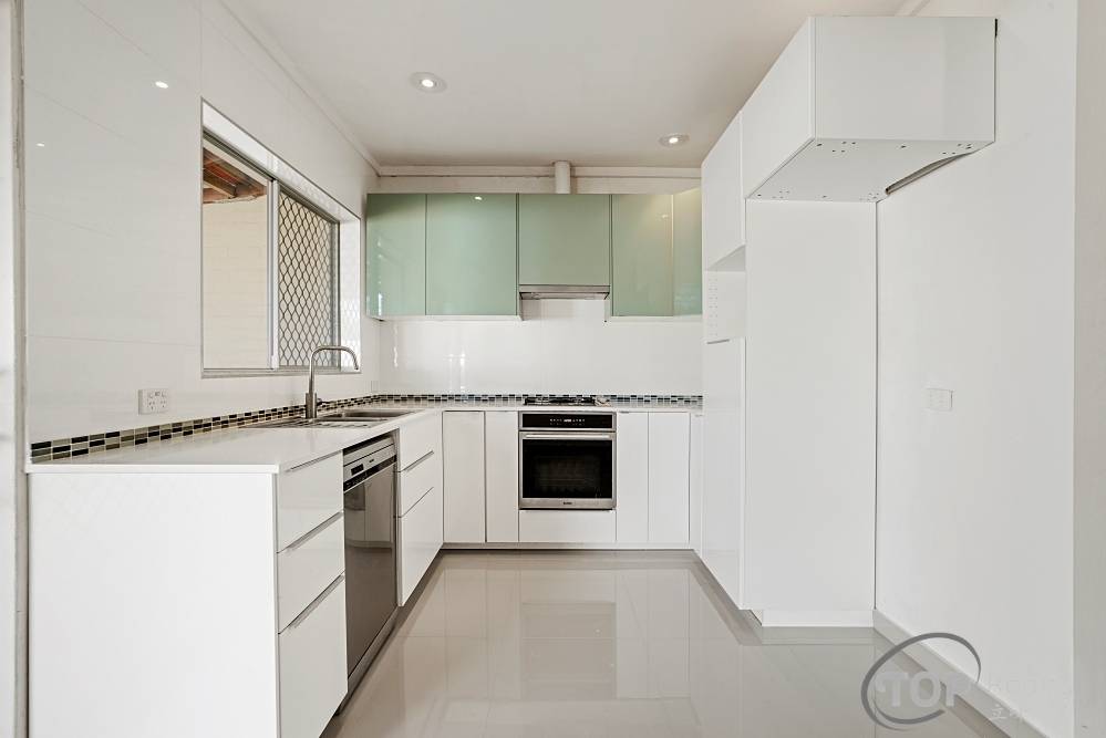 Renovated kitchen with brand new stone bench top, gas cook top, dishwasher & generous storage cabinets