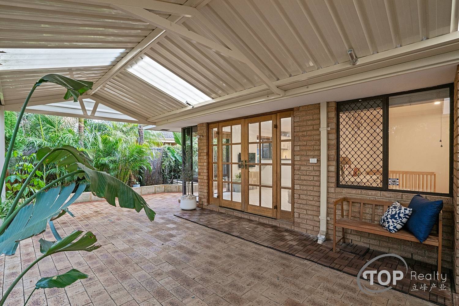 The sizeable backyard features a large pitched patio for your outdoor living needs and plenty of lawn space for your kids to play.