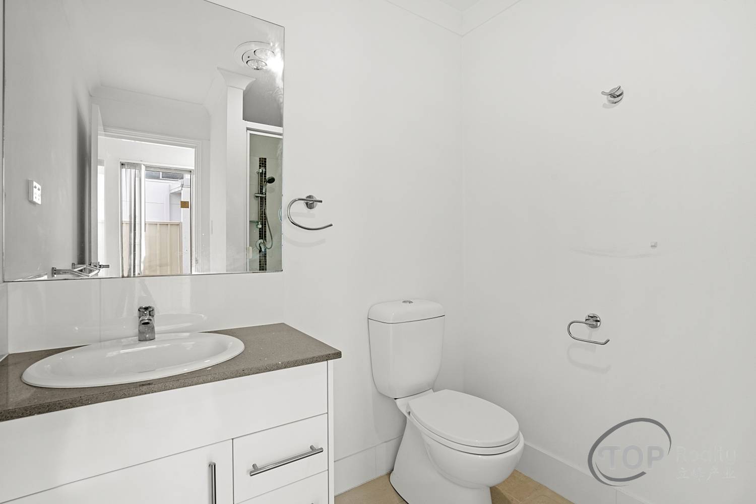 Bathroom with stone benchtop, shower & wc