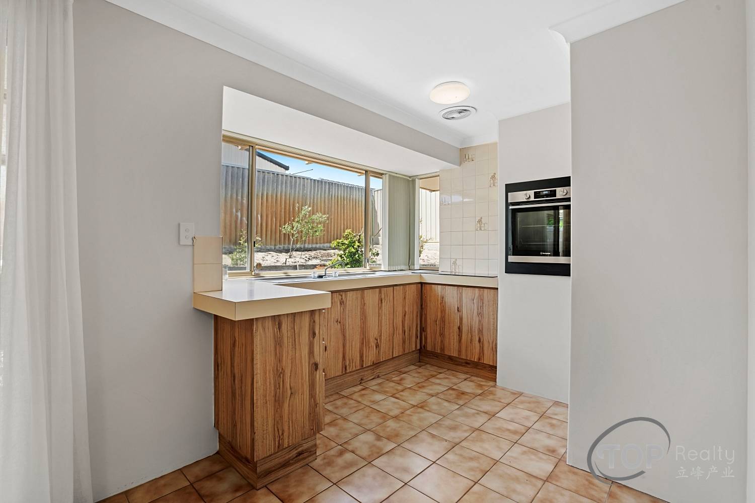 Kitchen with new electric cook top, brand new electric oven & generous storage space