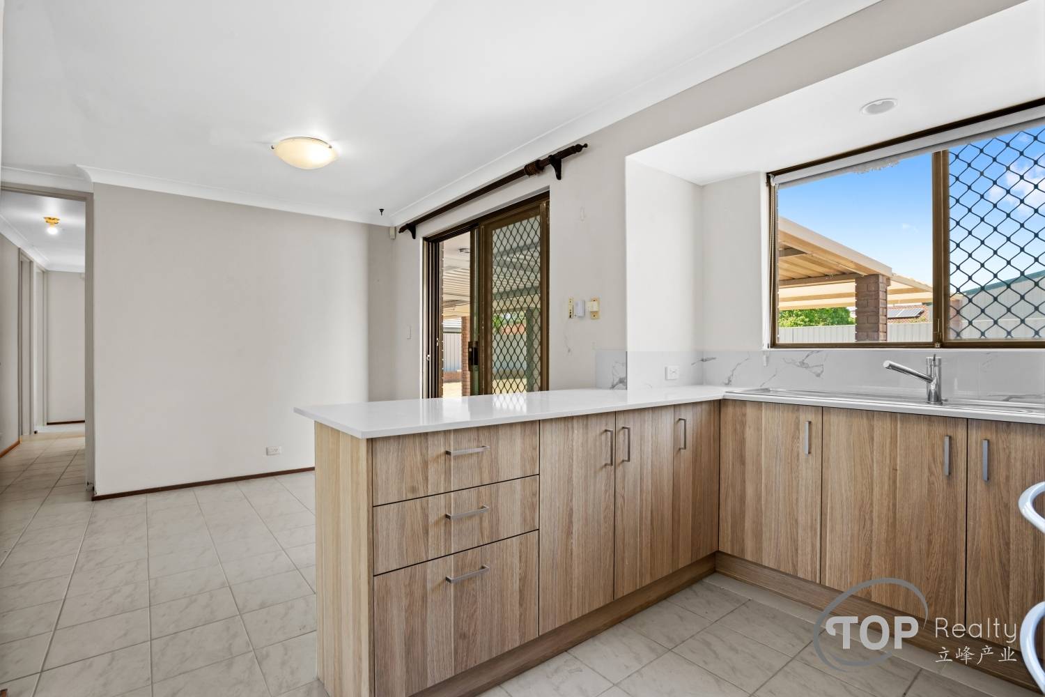 Renovated kitchen with stone benchtop