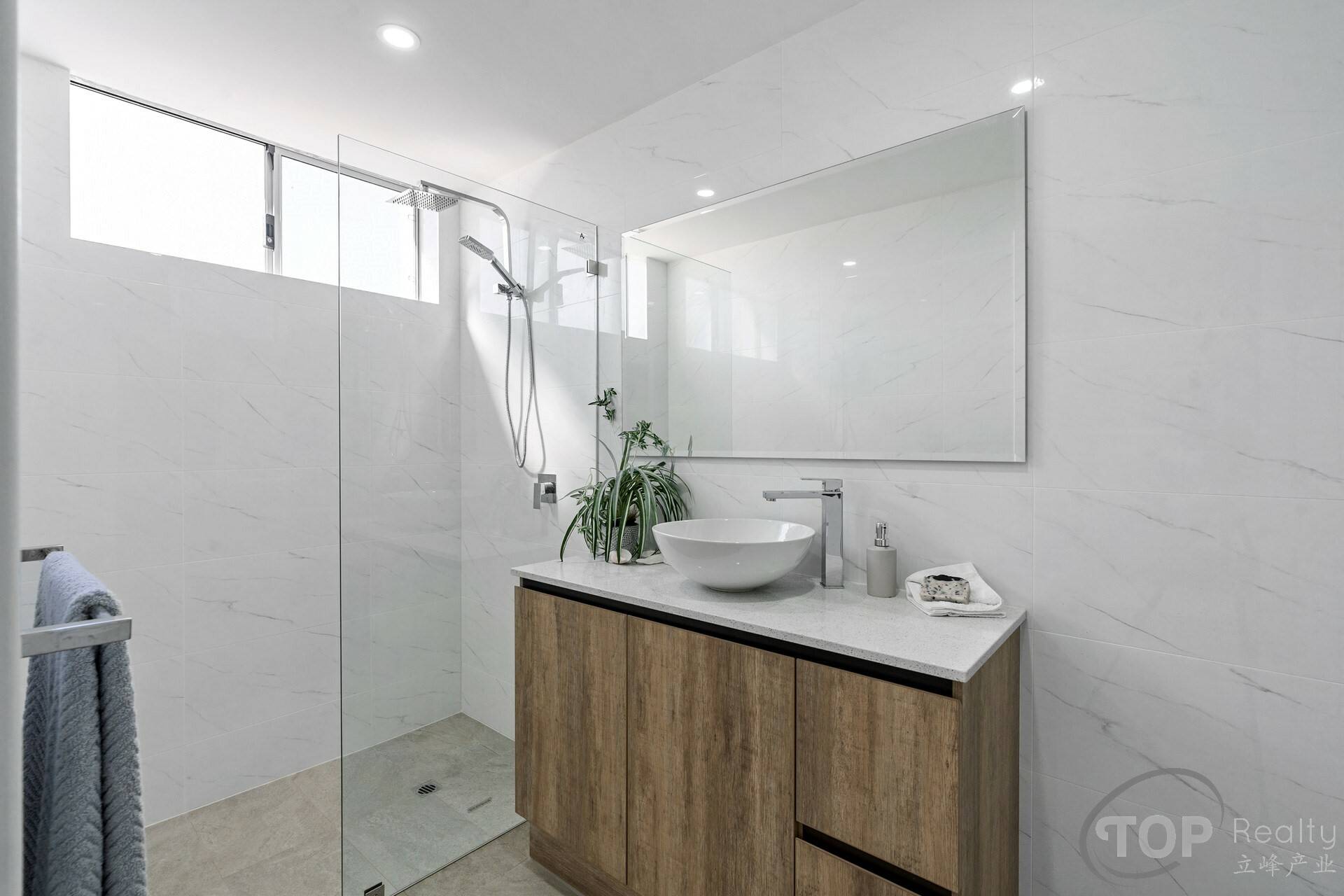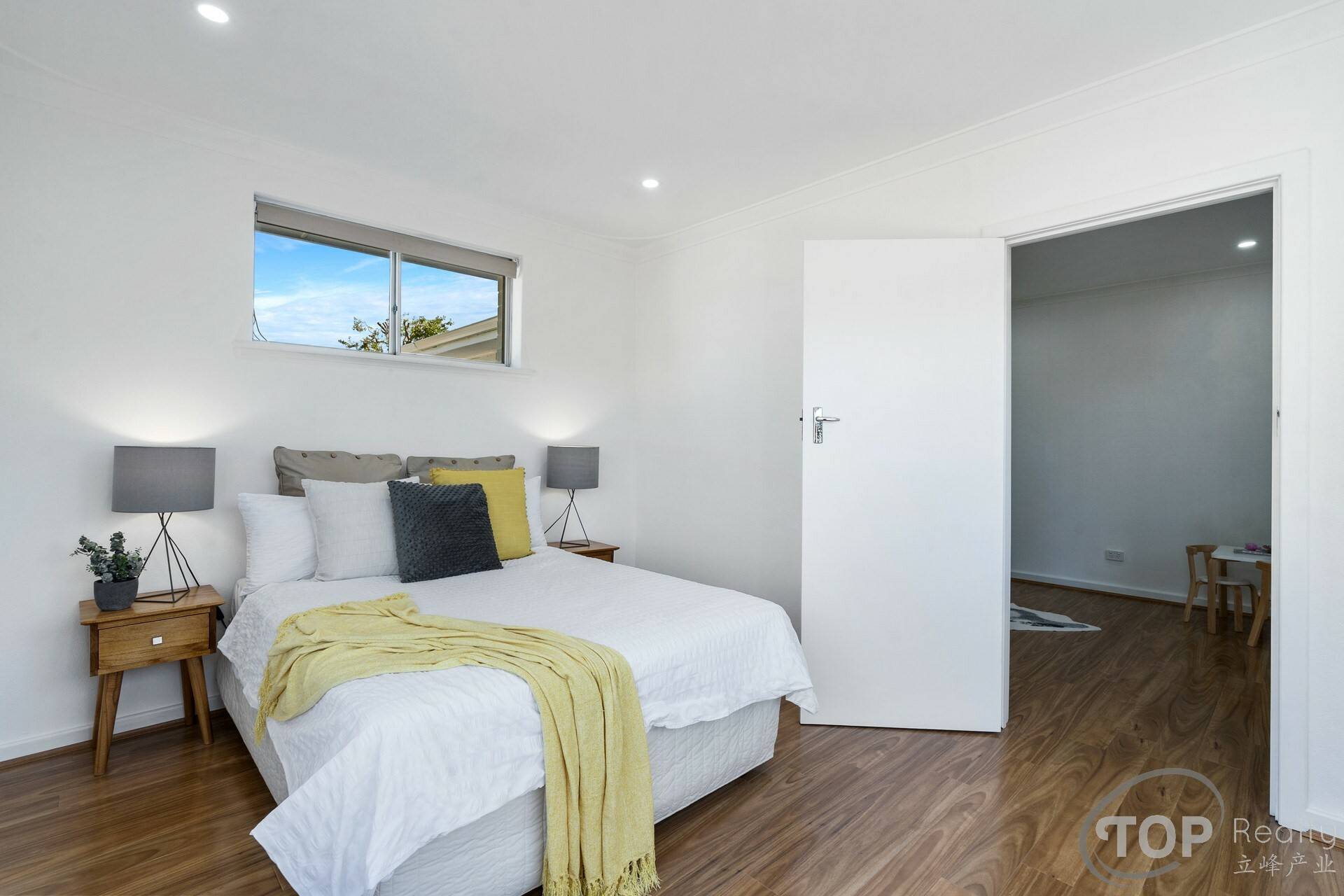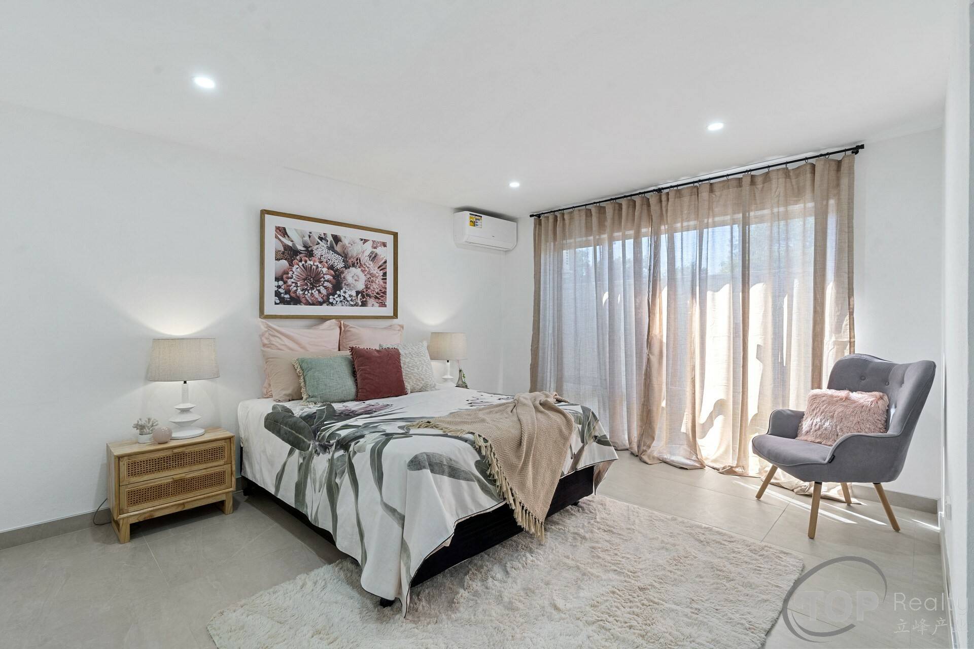 Large master bedroom downstairs with walk-in wardrobe; fully renovated ensuite features stone vanity top, full height wall tiling & rainshower