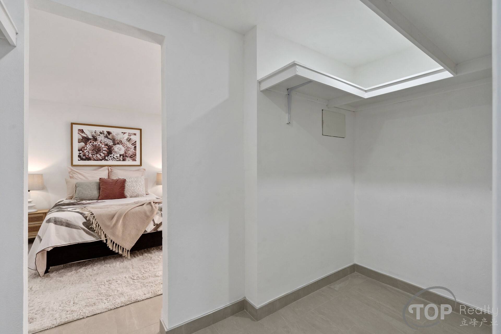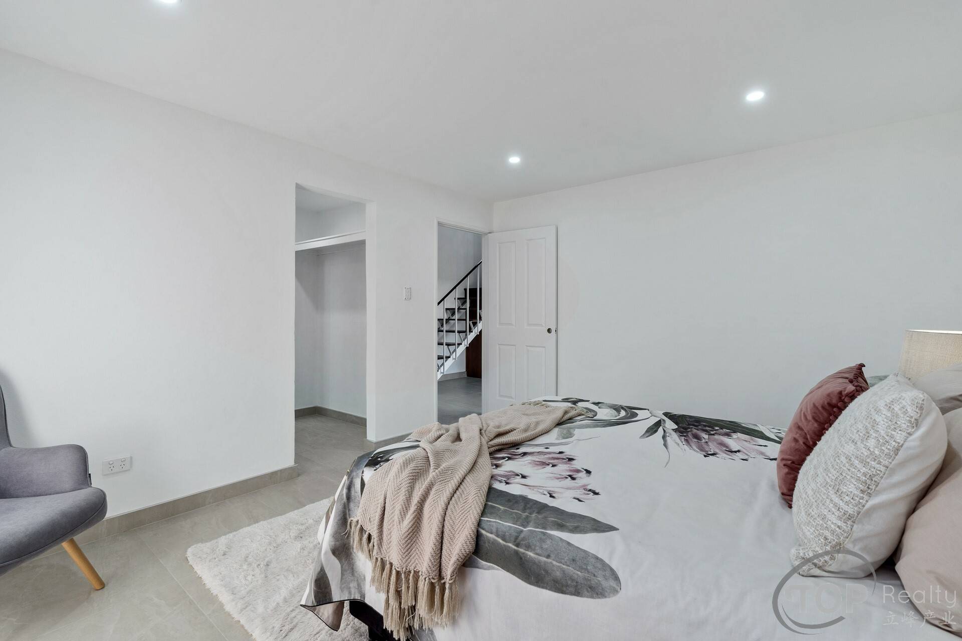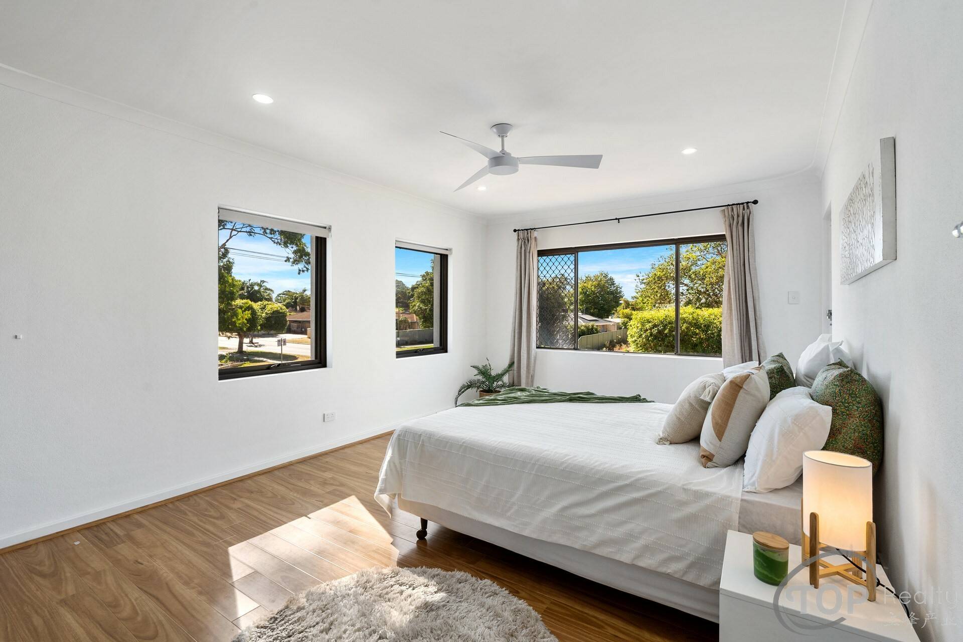 Large master bedroom downstairs with walk-in wardrobe; fully renovated ensuite features stone vanity top, full height wall tiling & rainshower