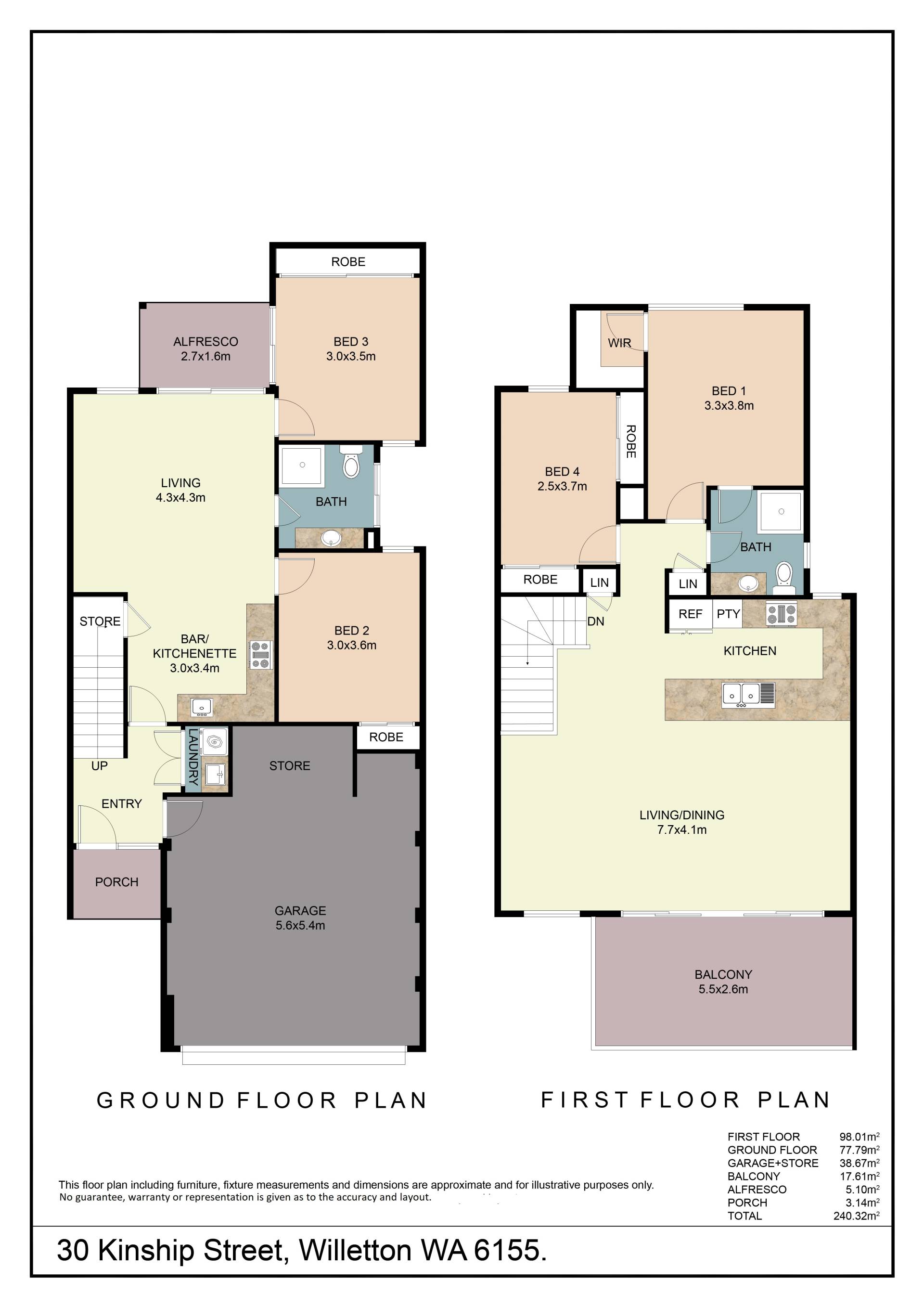The ground floor features an open plan living dining and kitchenette area, two spacious bedrooms and a bathroom. There is a rear alfresco for outdoor living. On the first floor, there are two more bedrooms, a bathroom and a large open plan area. The stunning extra large kitchen is well appointed with quality appliances, abundant storage cabinet space and stone bench top. Entertain your friends and family in style in the oversized front balcony that adjoins the living area. The double garage features additional storage space.