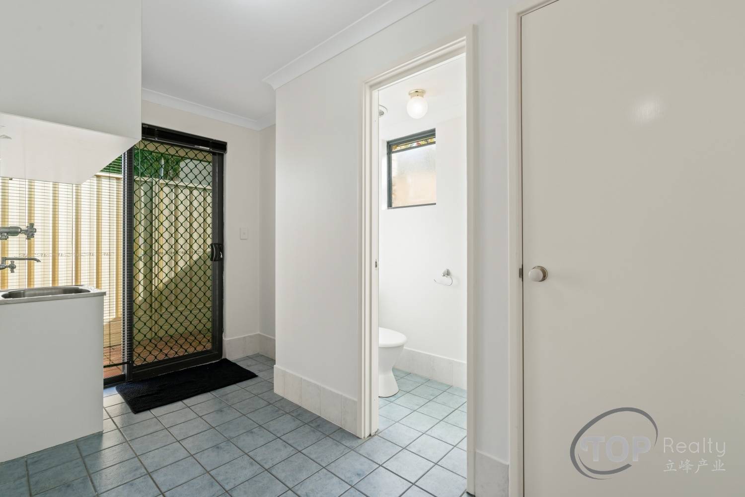 Large laundry with toilet & linen cupboard
