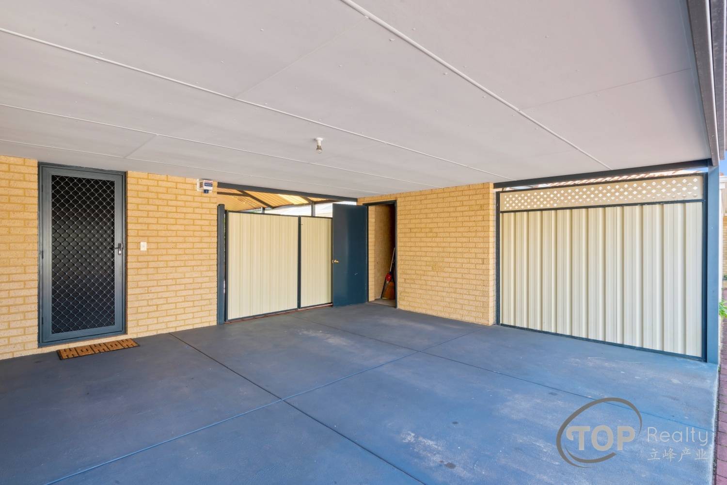 Double carport with lockup storage room