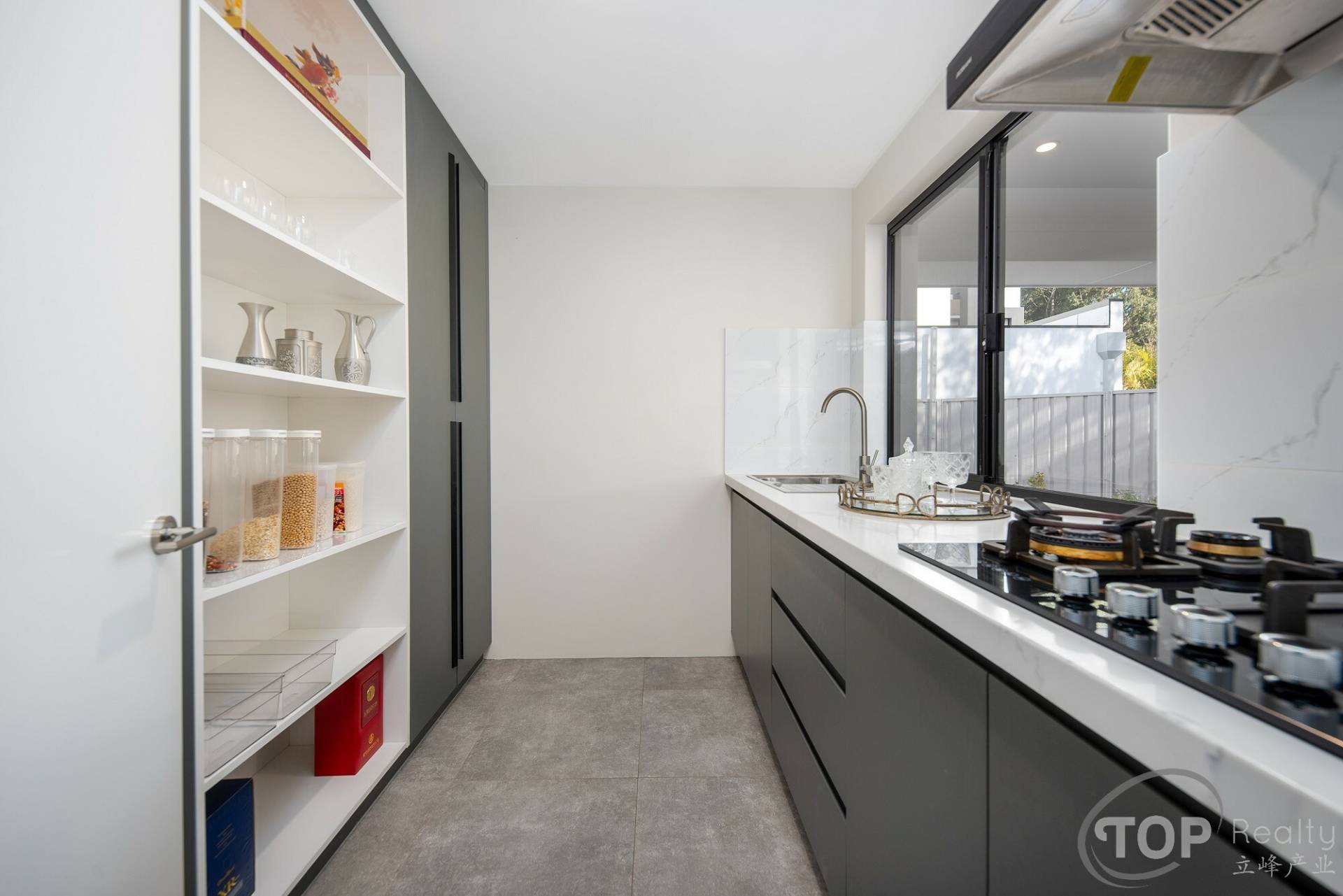 Central to the home is a large open plan area for dining and living. The designer kitchen features a large breakfast island, rows of pot drawers and vast stone bench top. For heavy duty cooking, retreat into a purpose built scullery equipped with another gas cook top, range hood and pantry space.