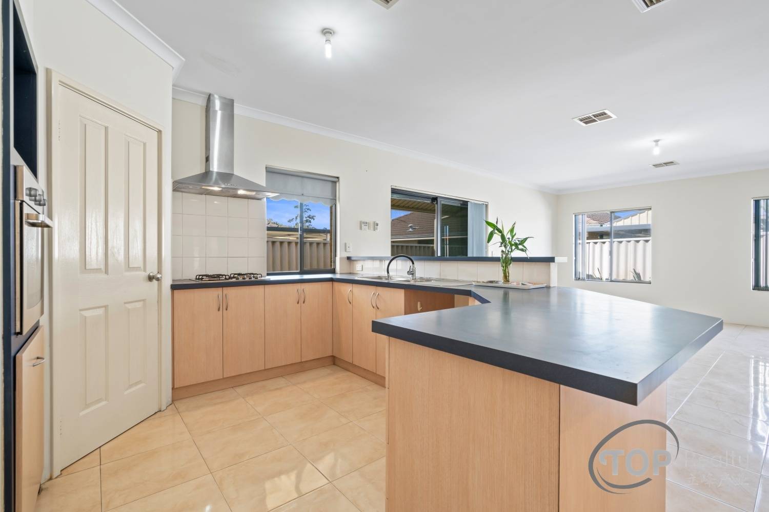 Well equipped kitchen features gas cook top, oven, rangehood & plenty of storage space