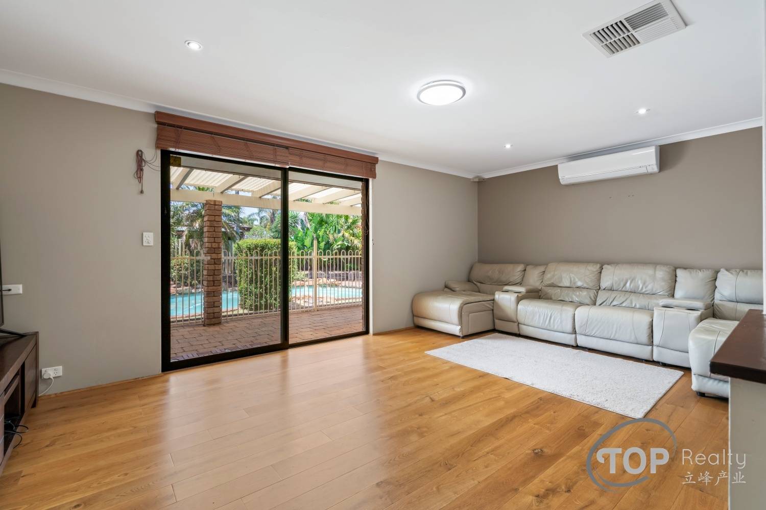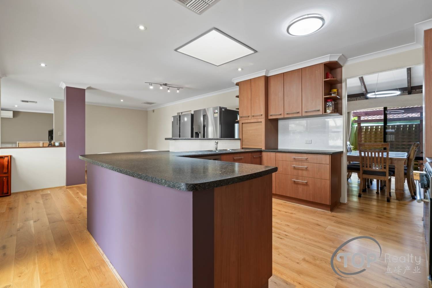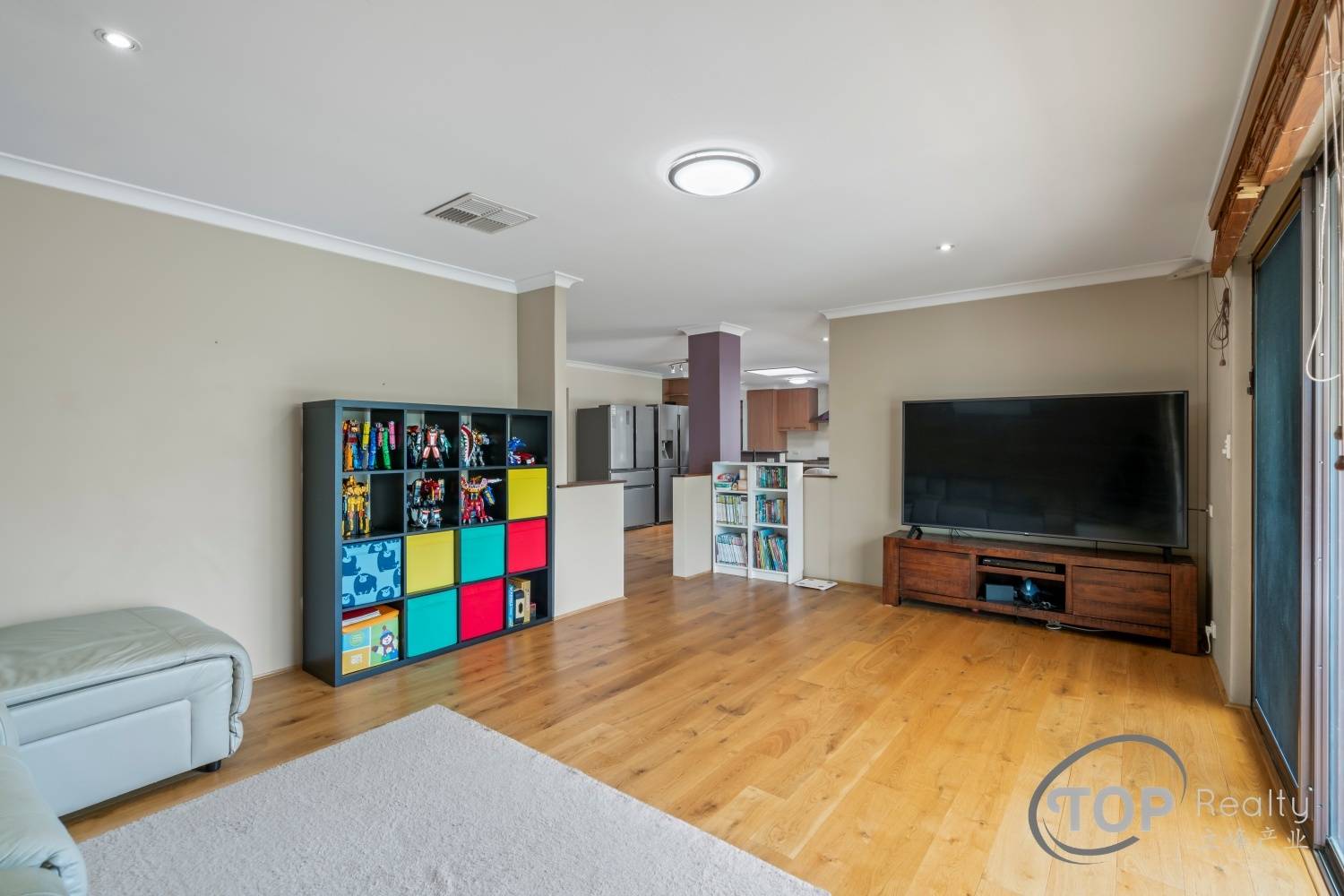 Spacious front lounge & dining features high raked ceiling