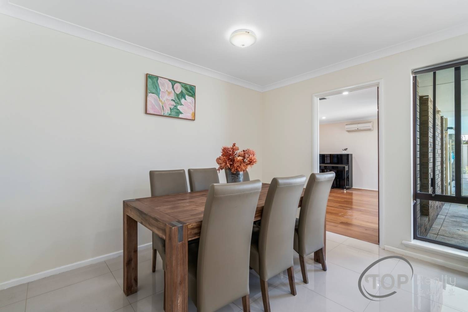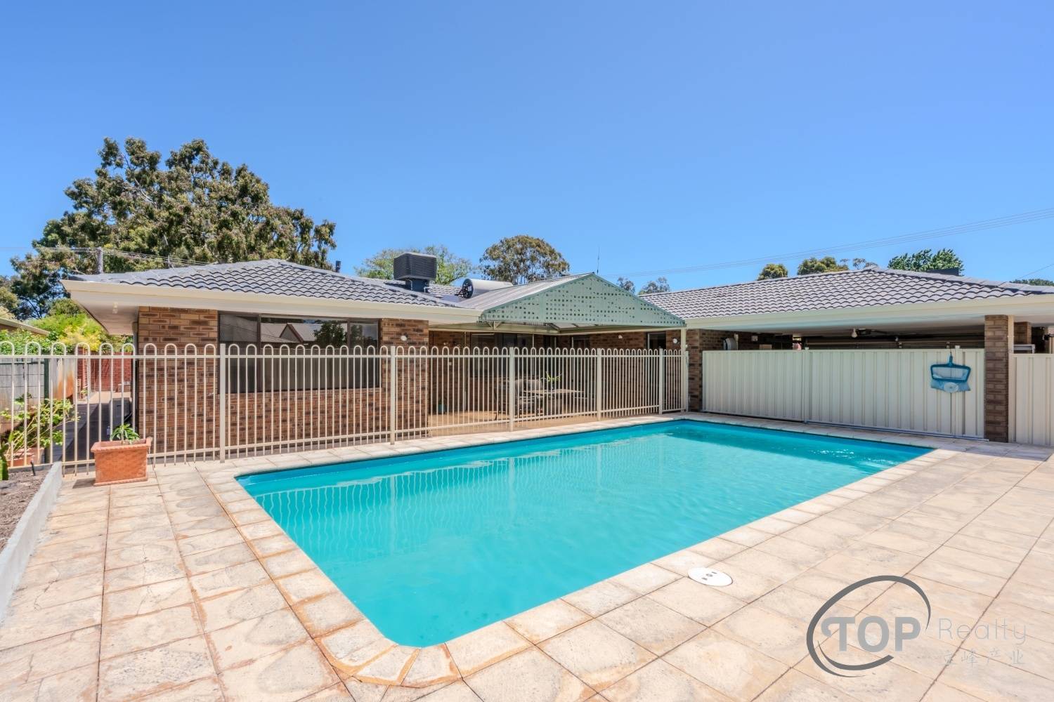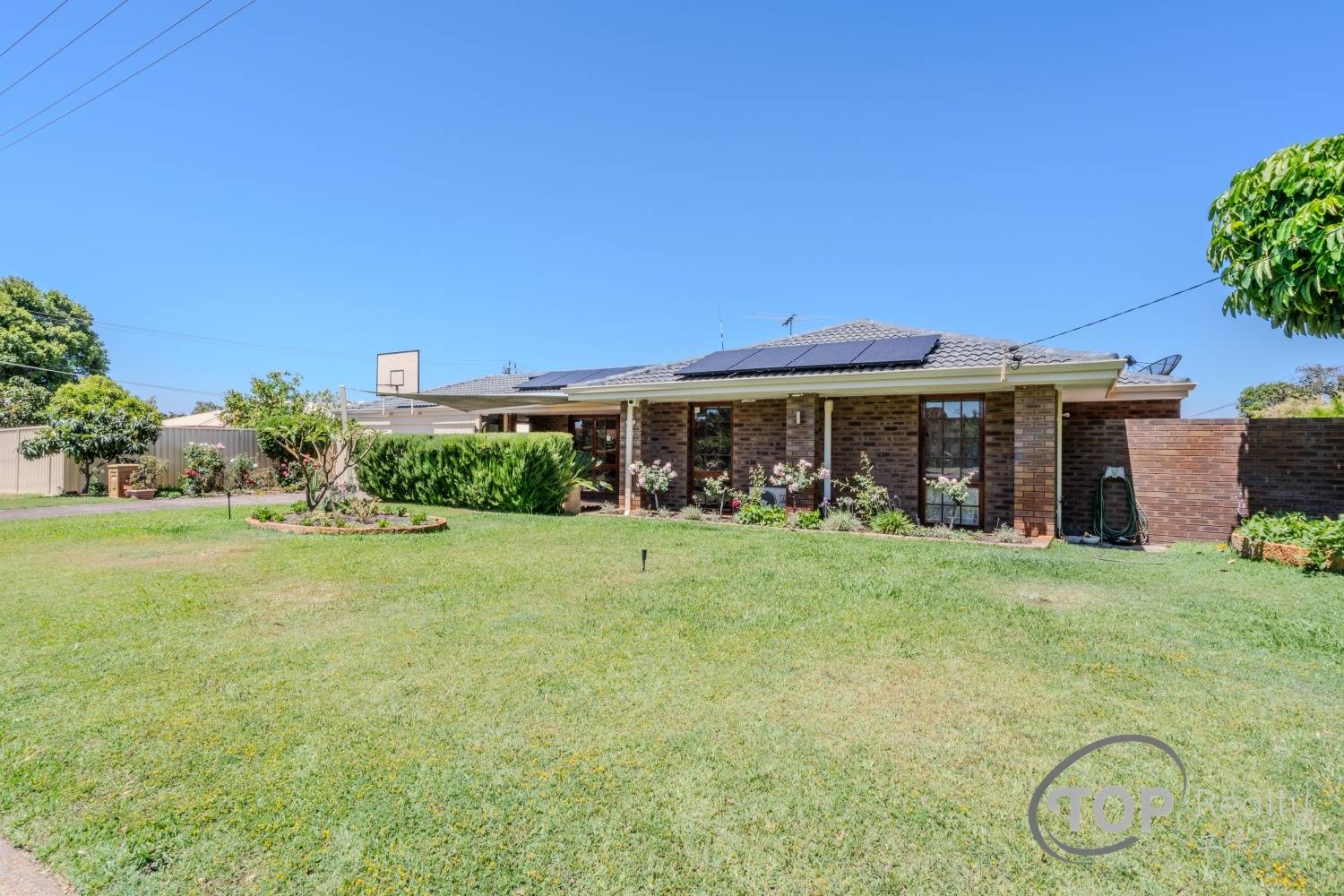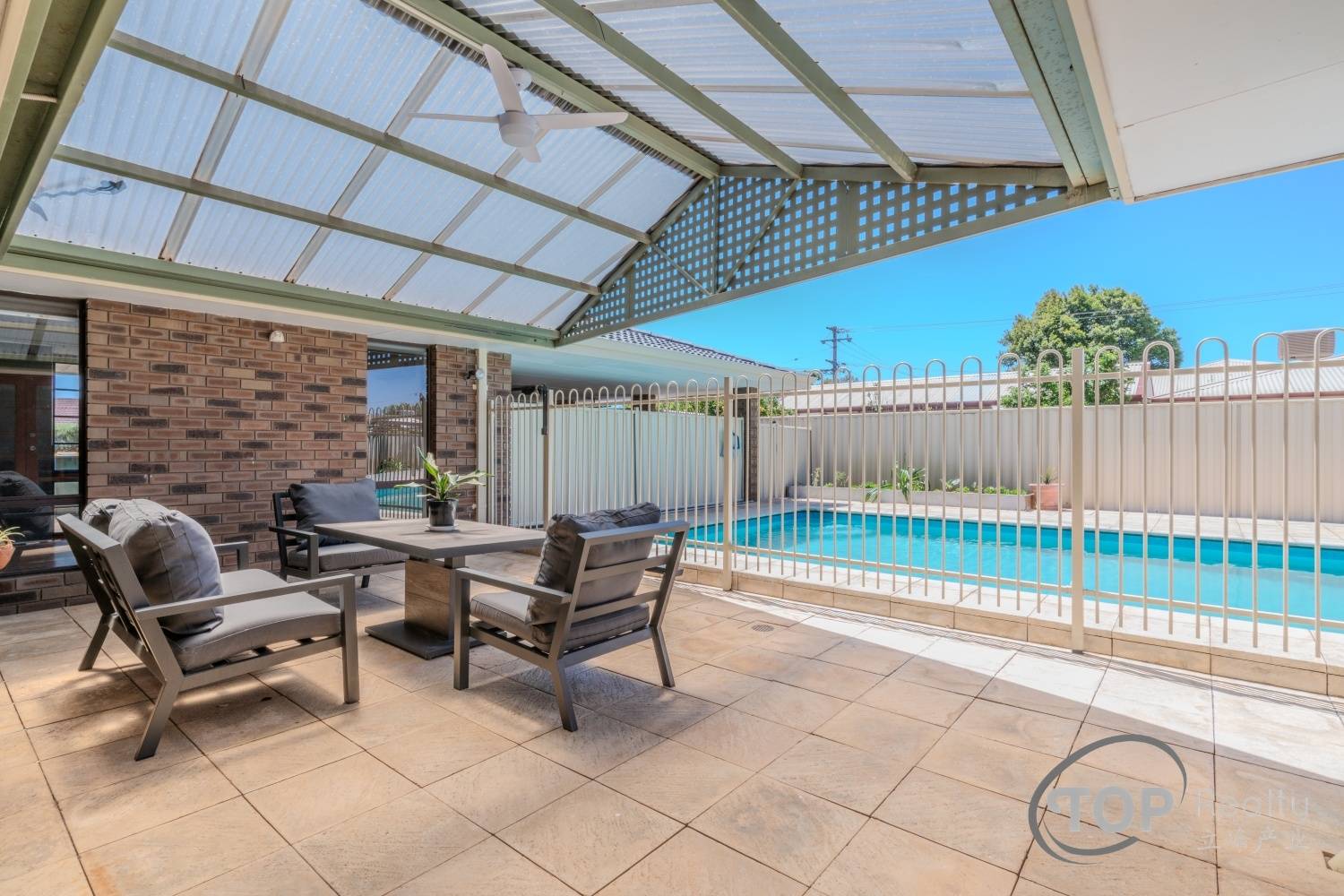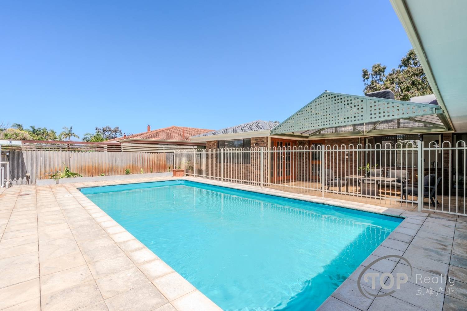 The backyard features a large pitched patio to live outdoors and a sparkling pool. There is a side gated access to a large paved area. Other features include ducted evaporative cooling system, three split air con units, bore reticulation, solar panels system and security alarm system.