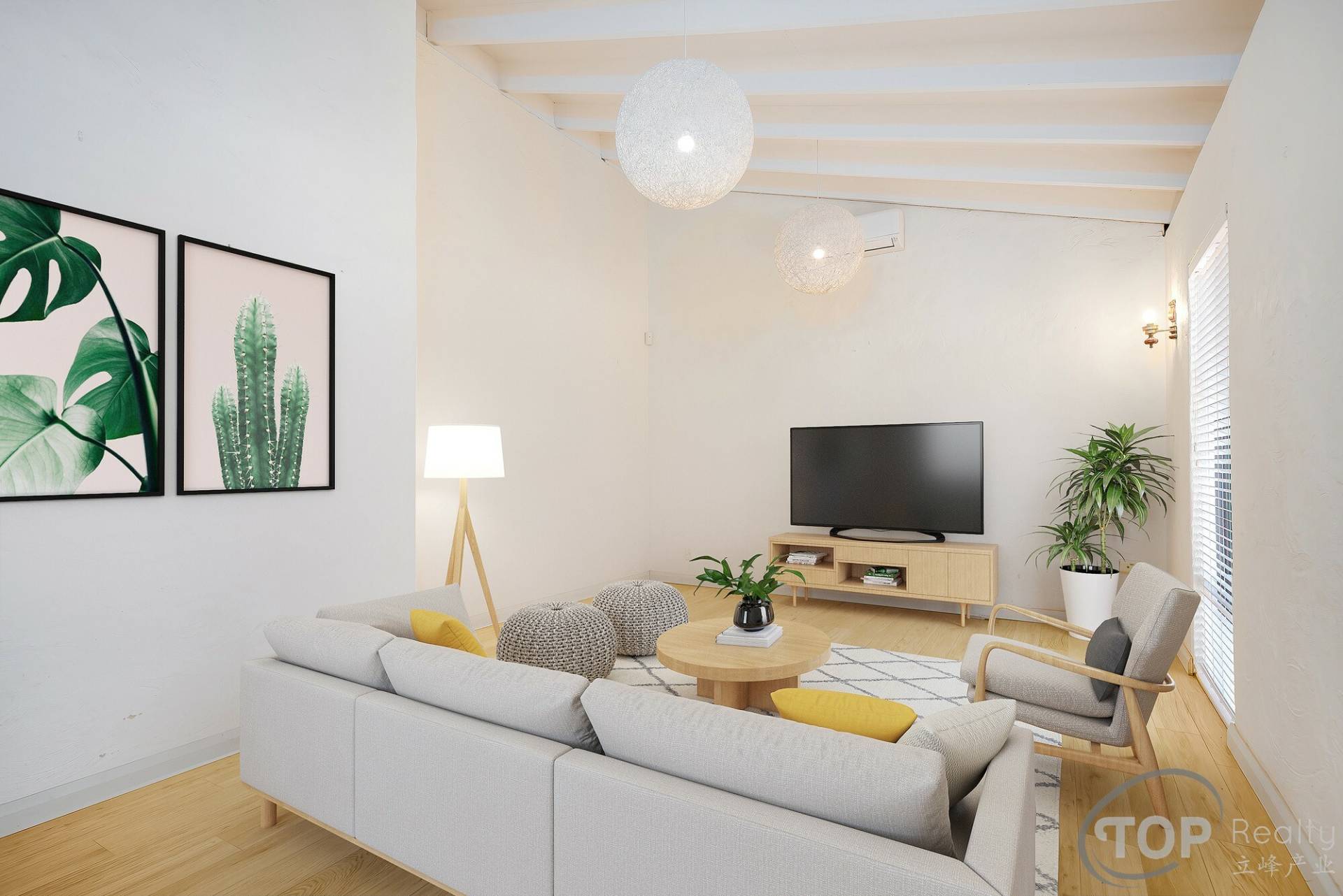 Ducted refrigerated air con system on multiple zones; split air con units to lounge & family rooms