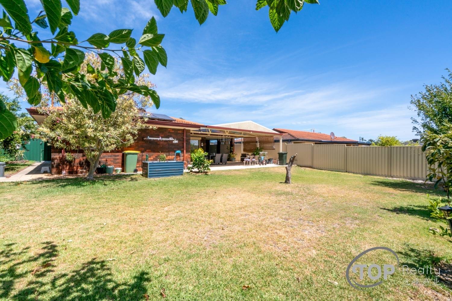 The large backyard has plenty of lawn space for kids to play, numerous established fruit trees and a large pitched patio for outdoor living.
