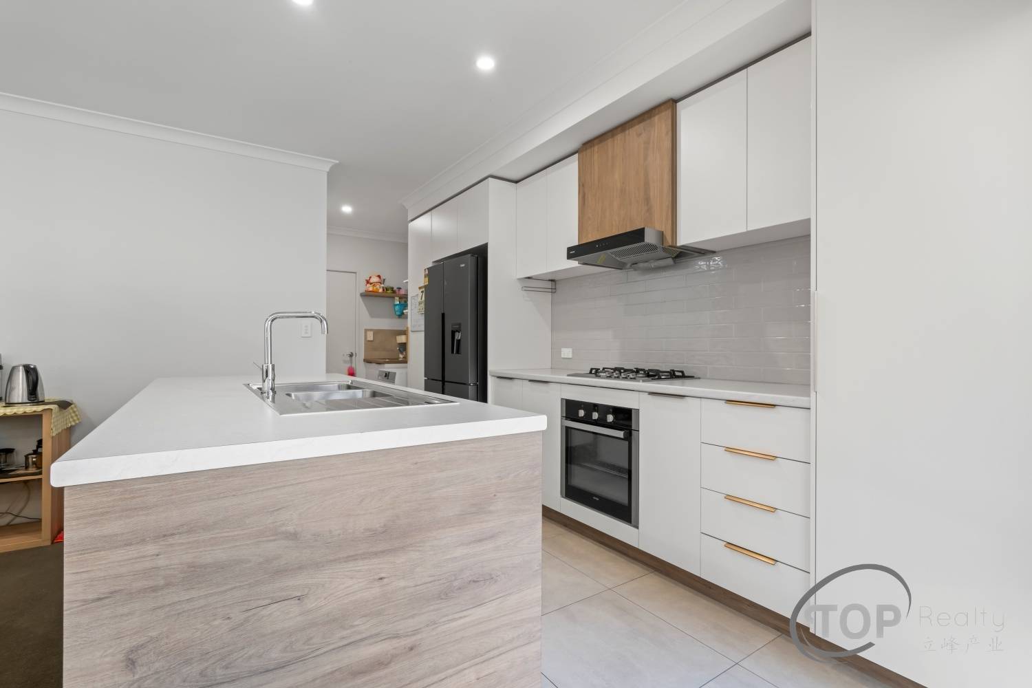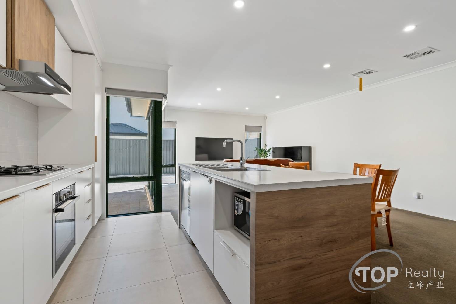 Kitchen well appointed with island breakfast bench, generous cabinet storage space, gas cook top, dishwasher & rangehood