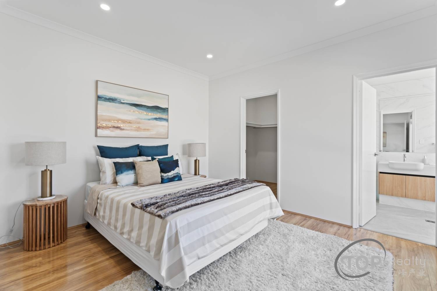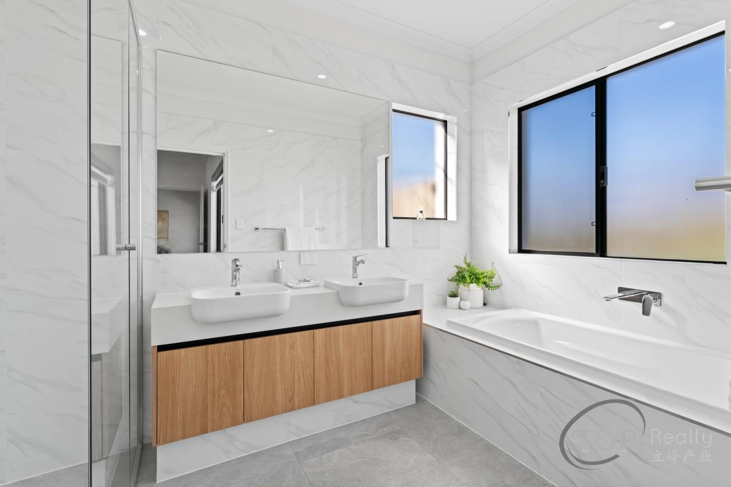 Spacious master bedroom features walk-in wardrobe; luxurious ensuite with double vanity basins, shower & bath