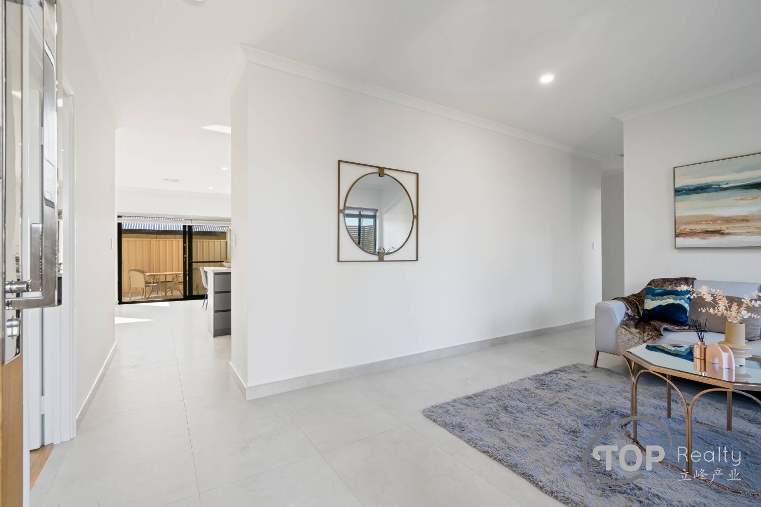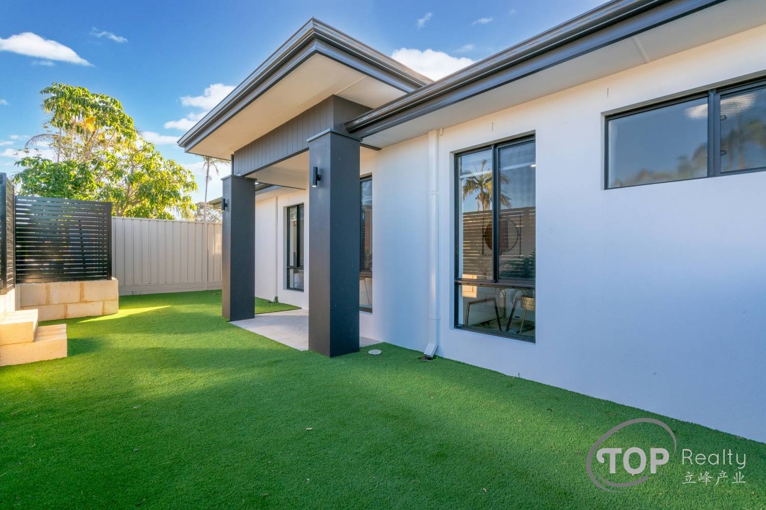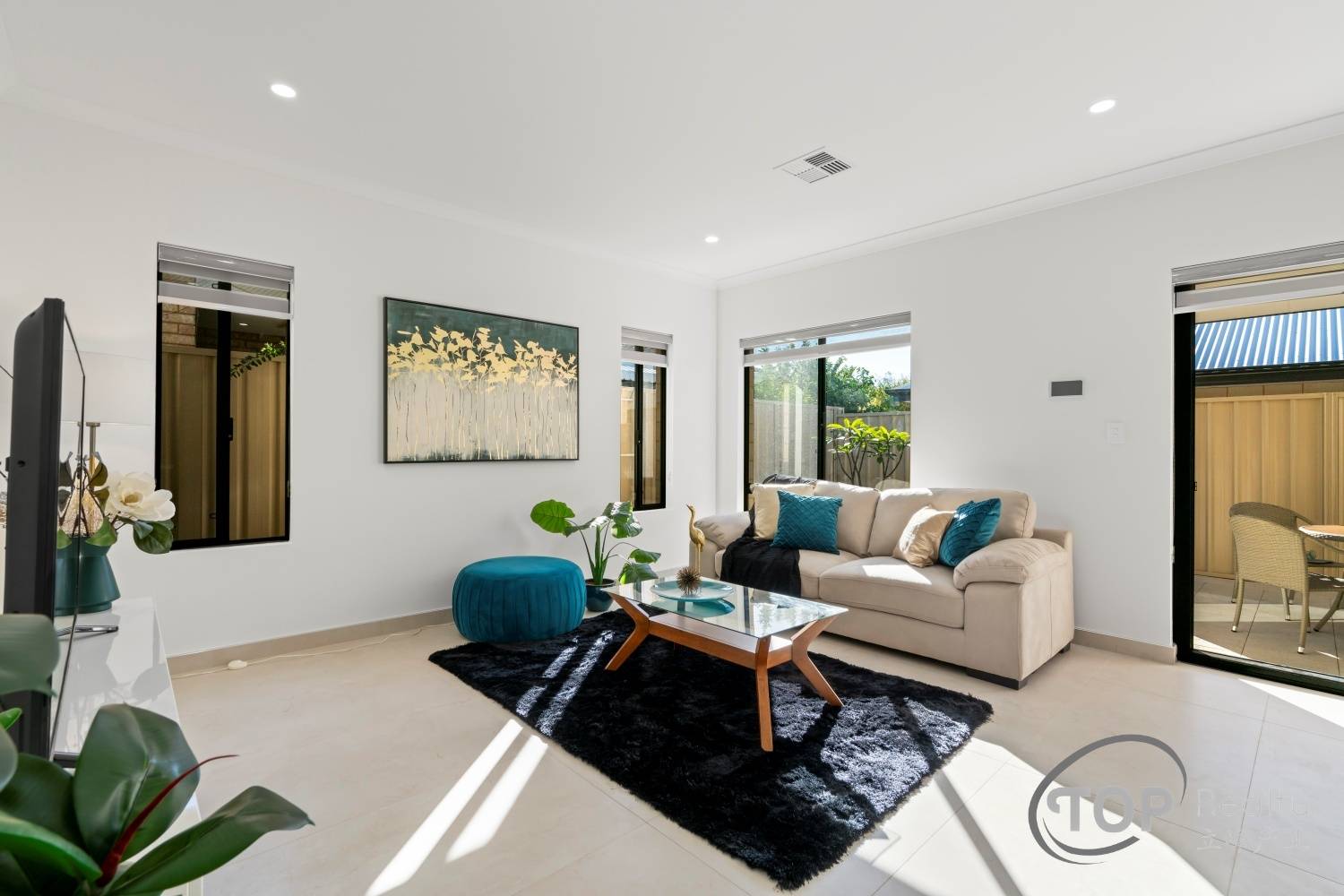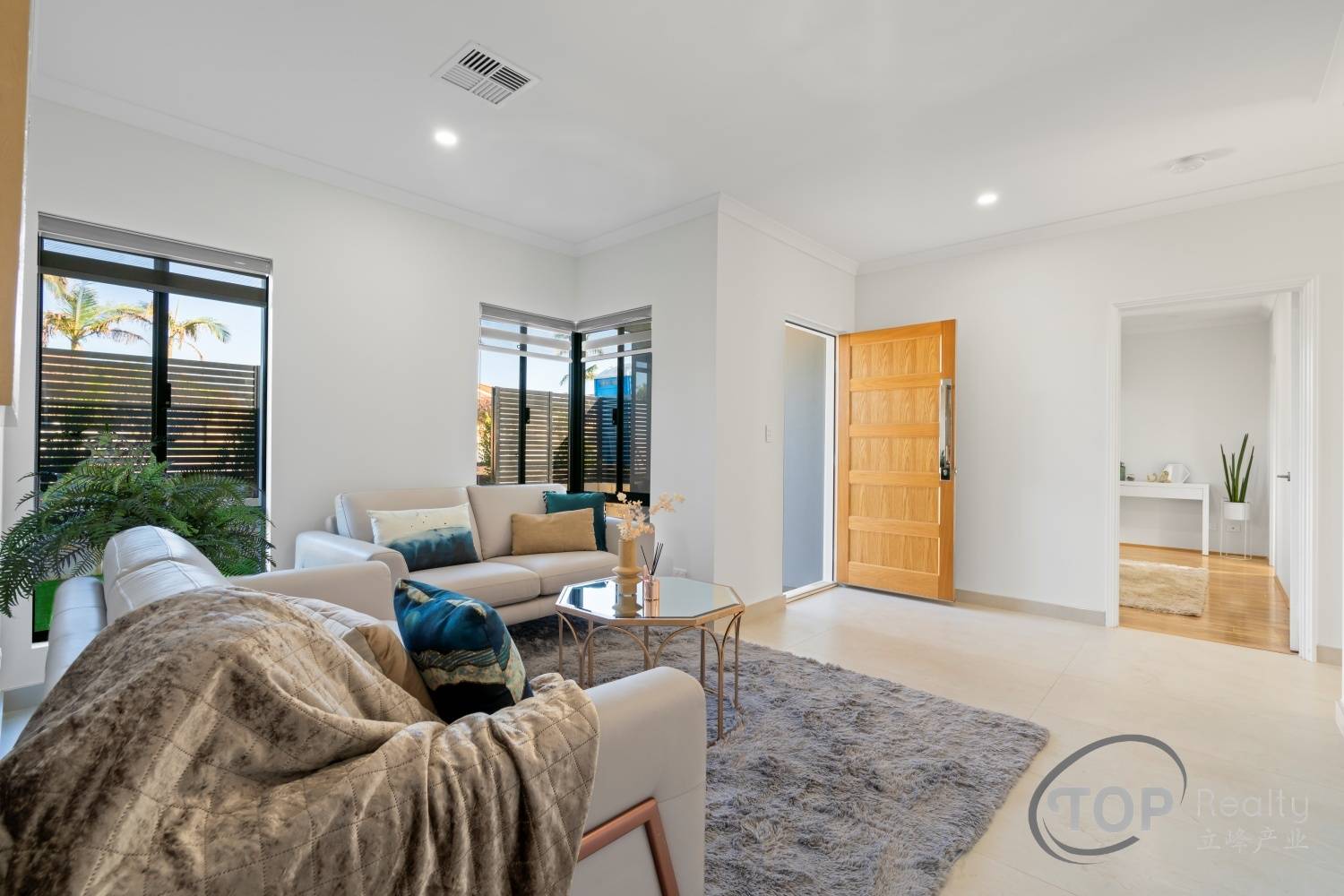 Stylish porcelain tiles adorn the living area floor. The bedrooms are well proportioned in size. The master bedroom features a luxurious ensuite with double stone top vanity. High 31 course ceilings fill the house with natural light and sense of spaciousness.