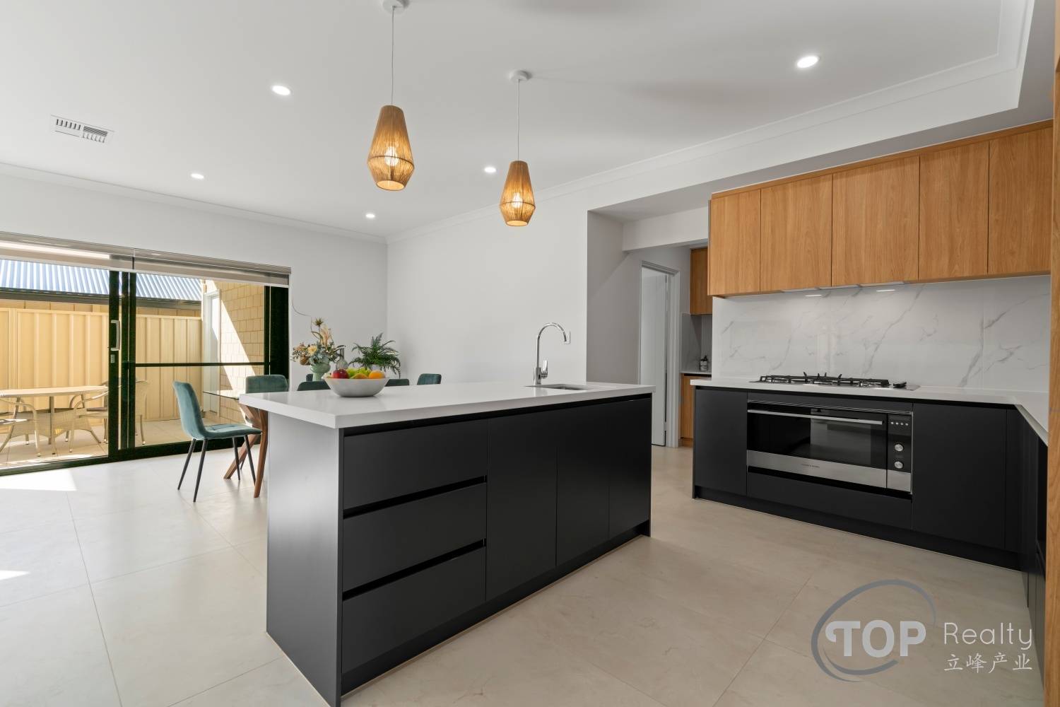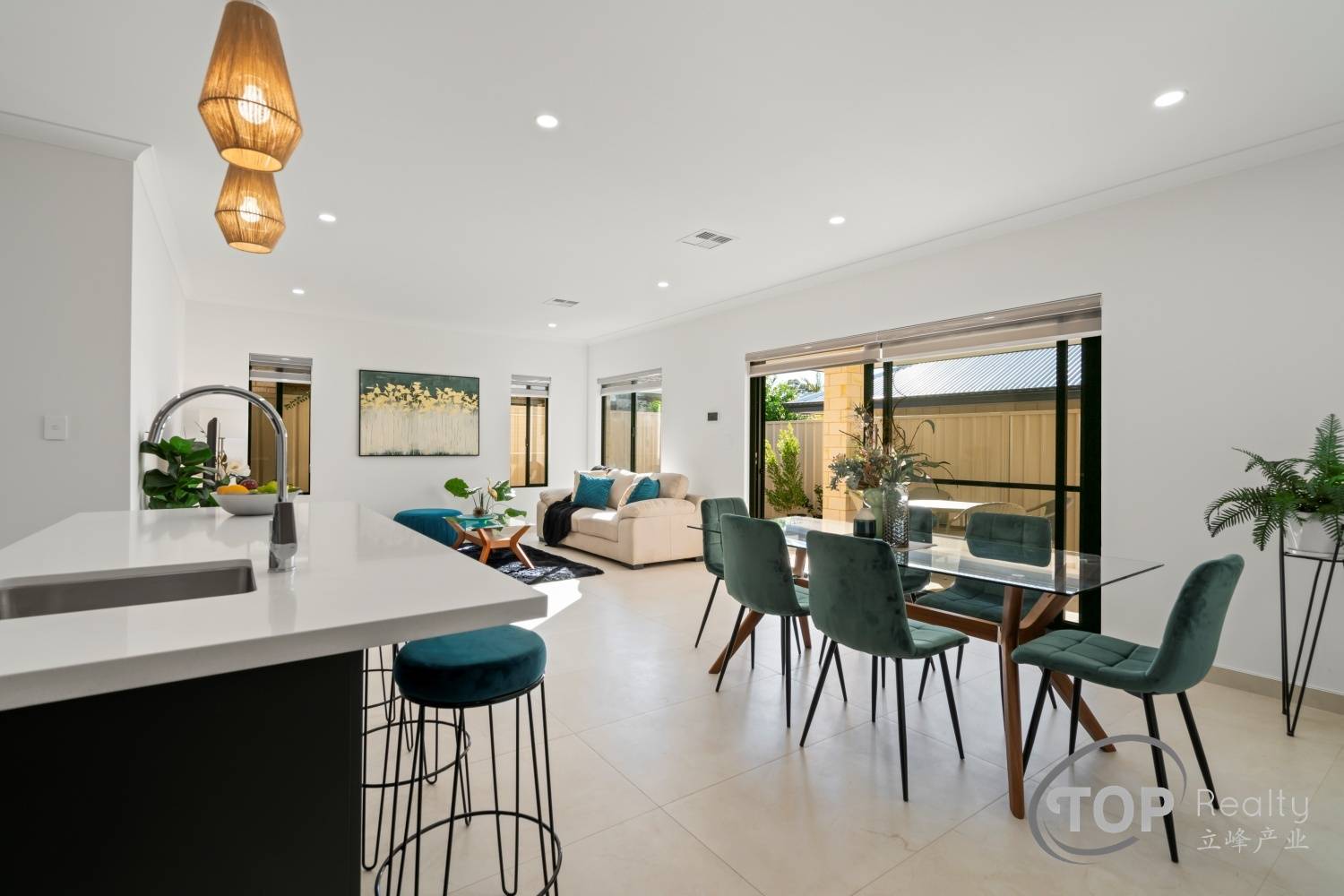 Open plan kitchen, dining & living layout