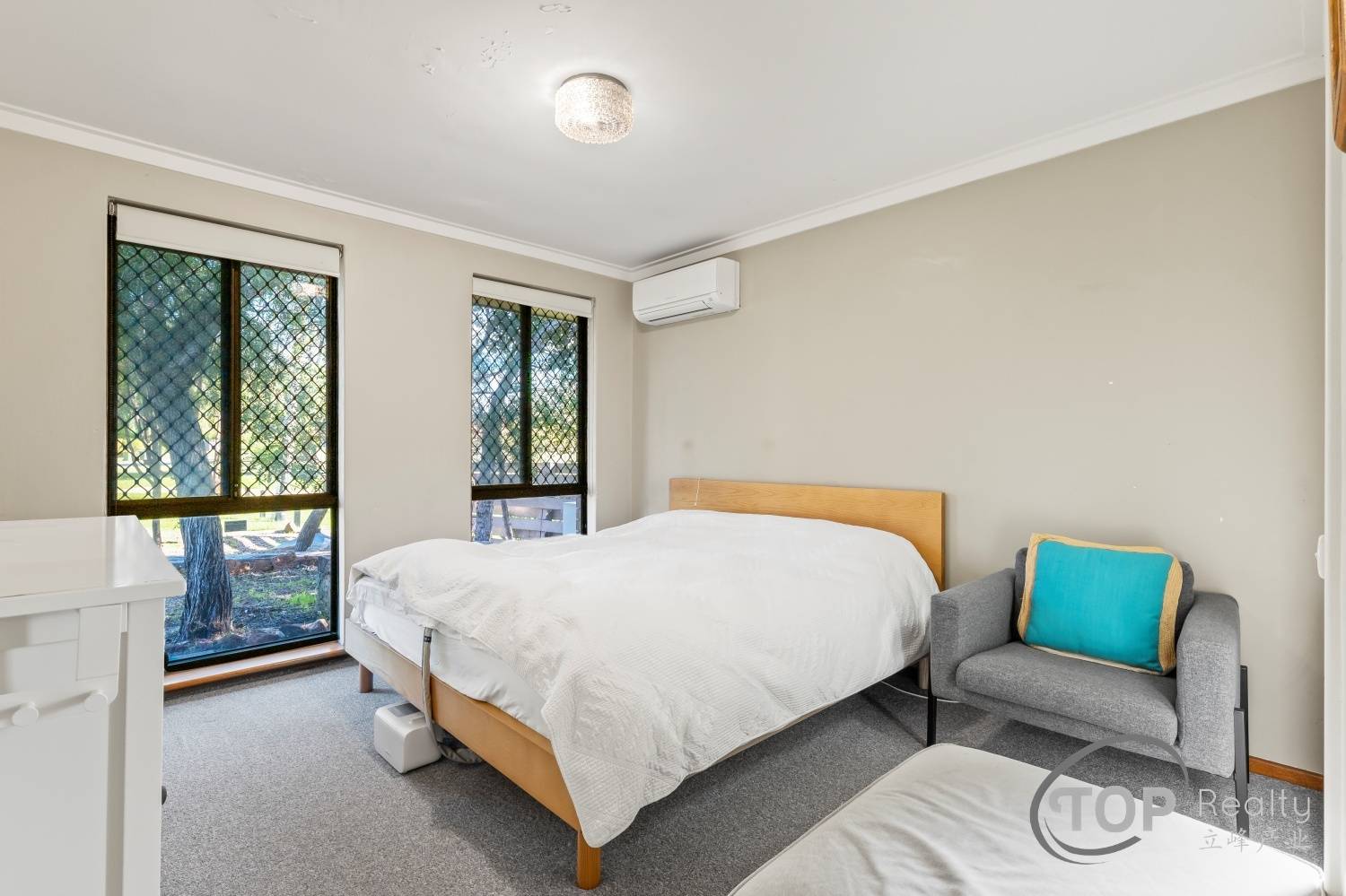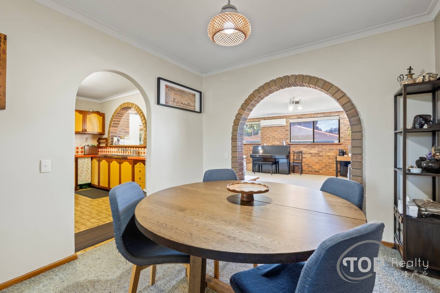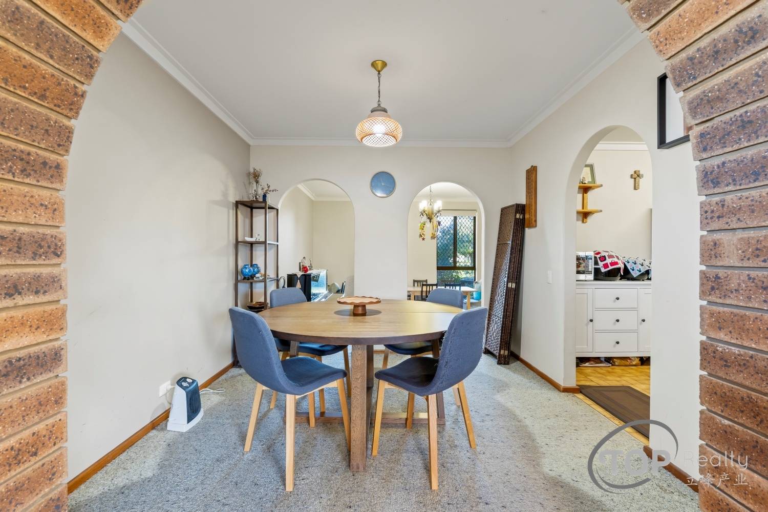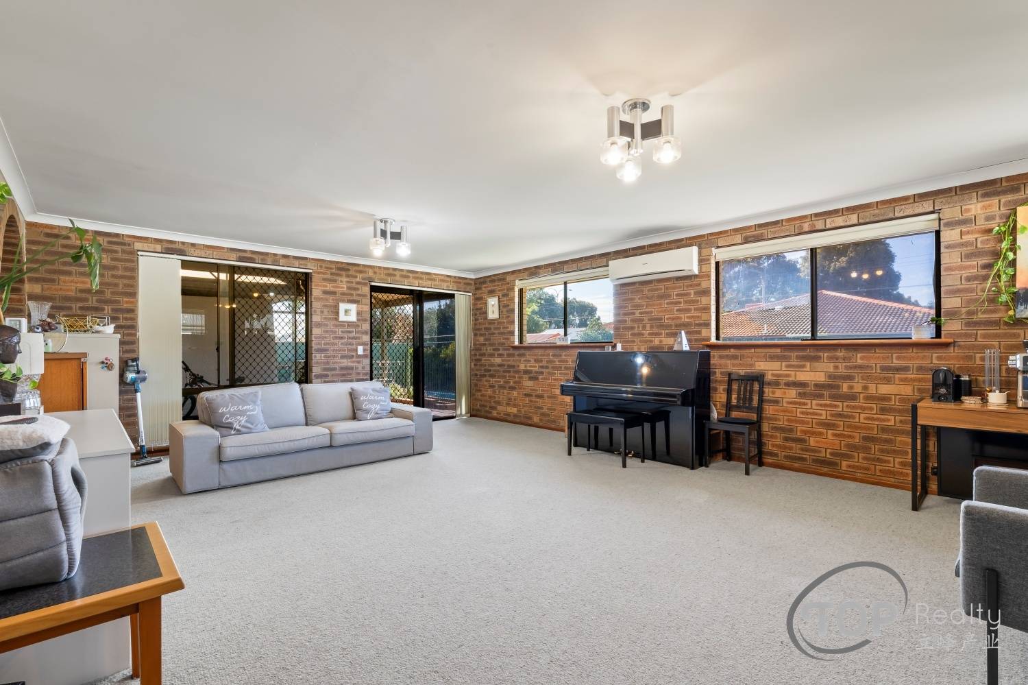 Internally, there are two spacious living areas and a dining. Bedrooms are well proportioned. The functional kitchen features an electric cook top and generous cabinet storage space. Three split air con units around the house provide a comfortable ambient temperature throughout the seasons.