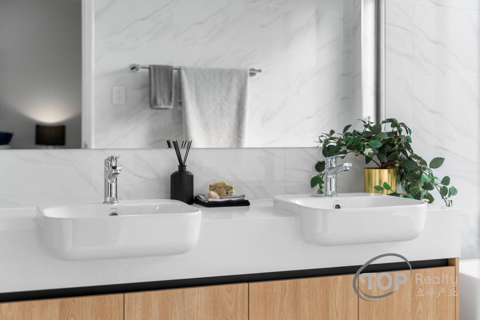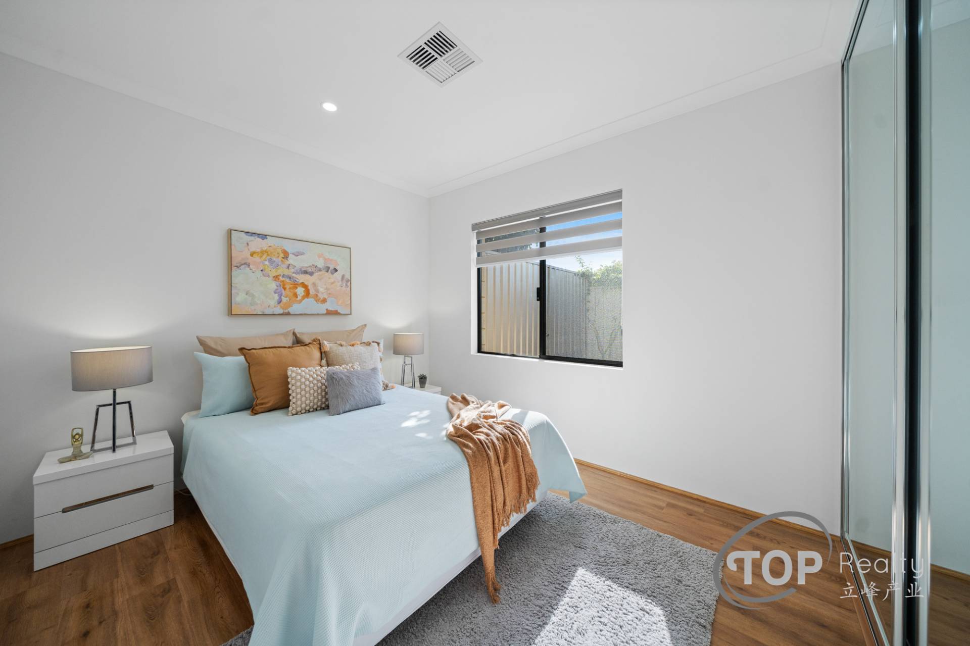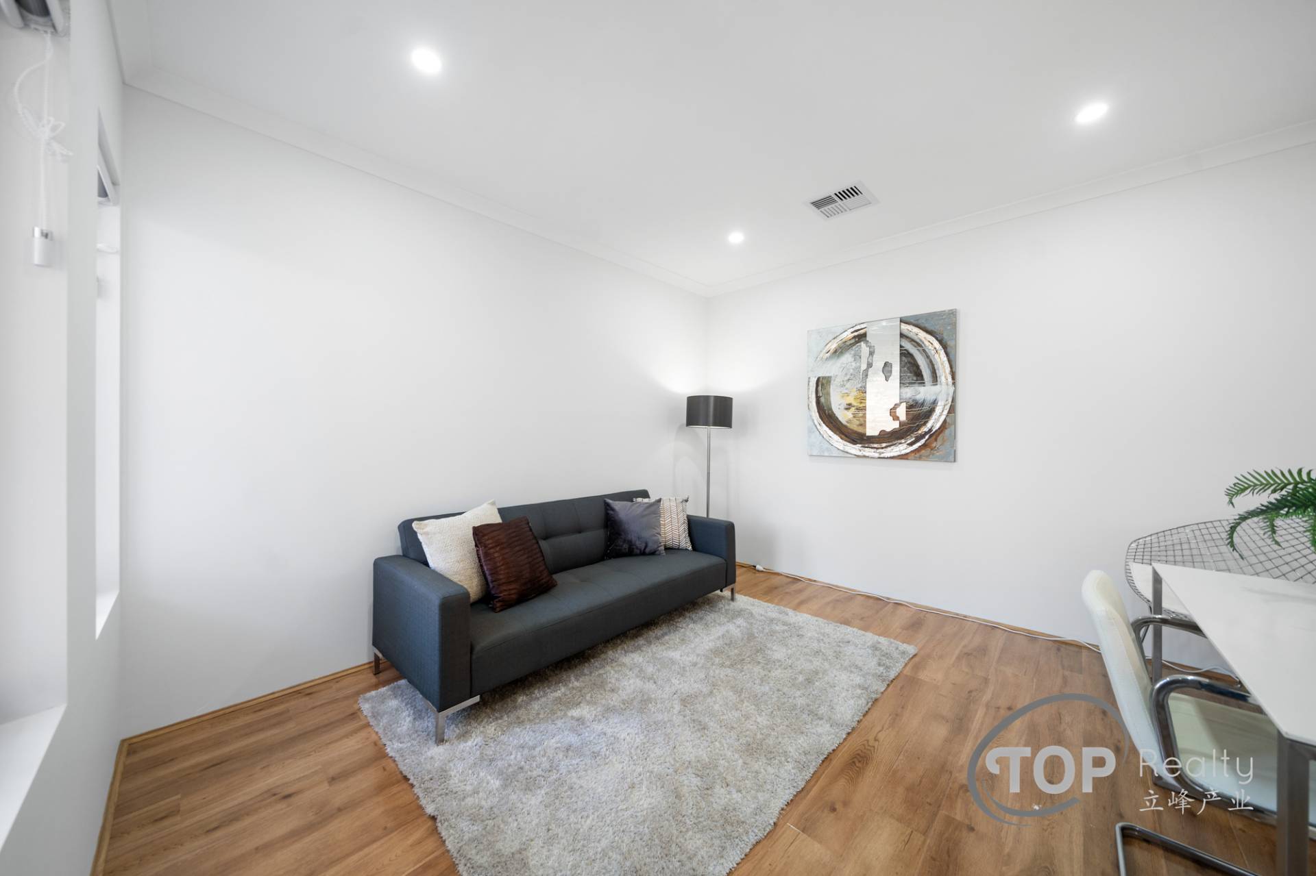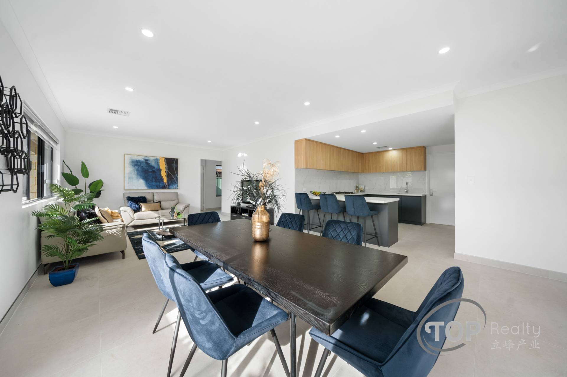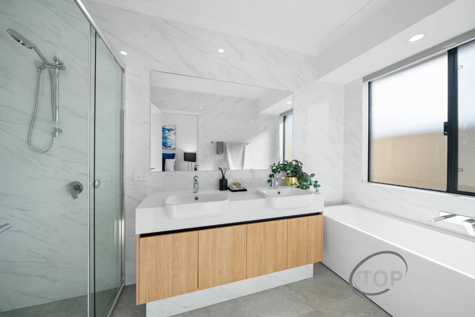 • Luxurious large format 600x1200 porcelain floor tiles in the main living areas with tiled skirting.