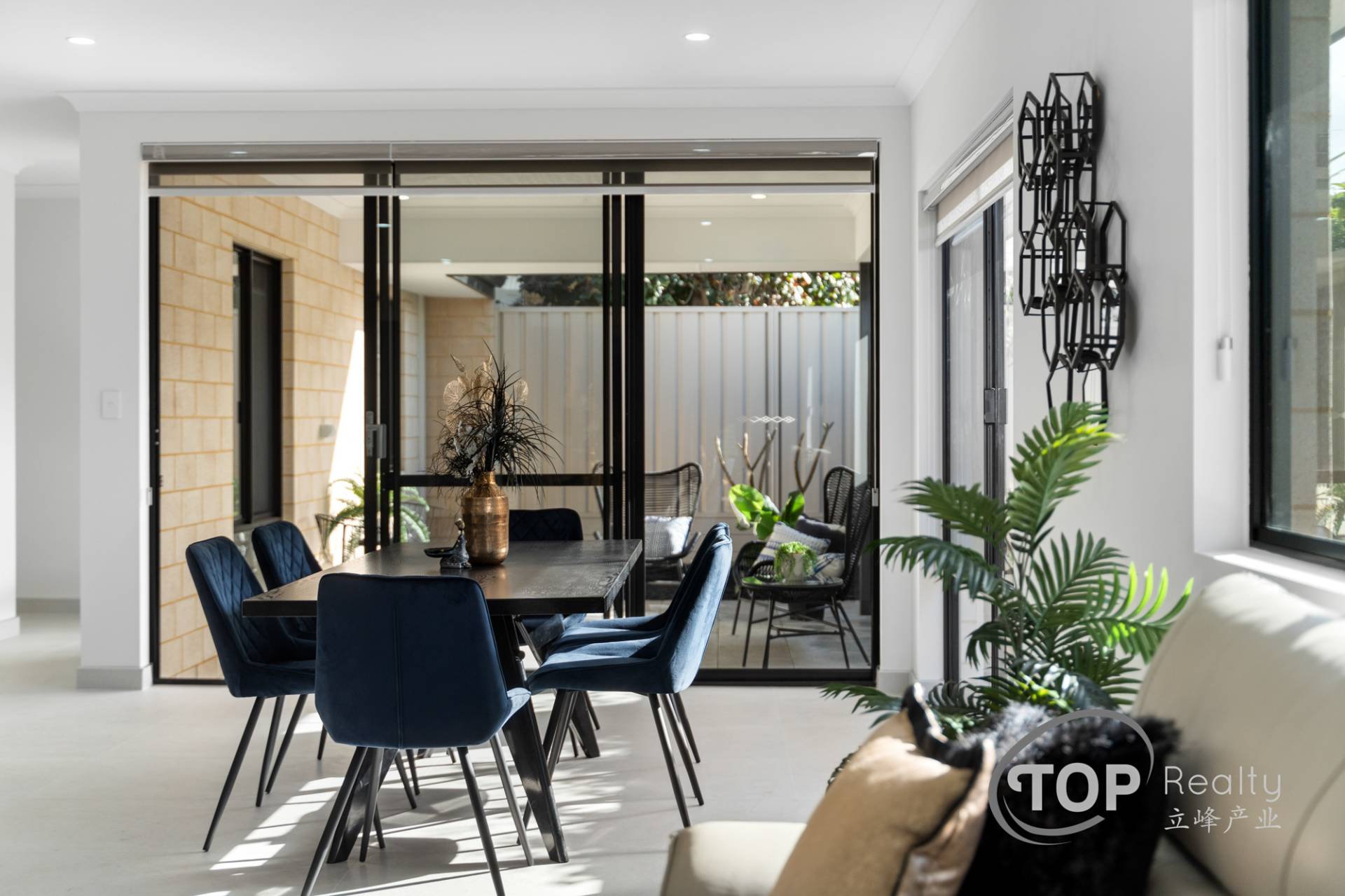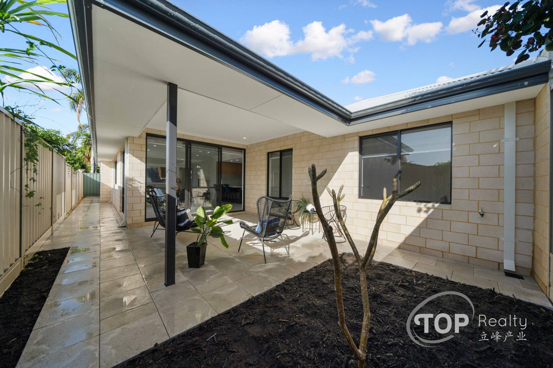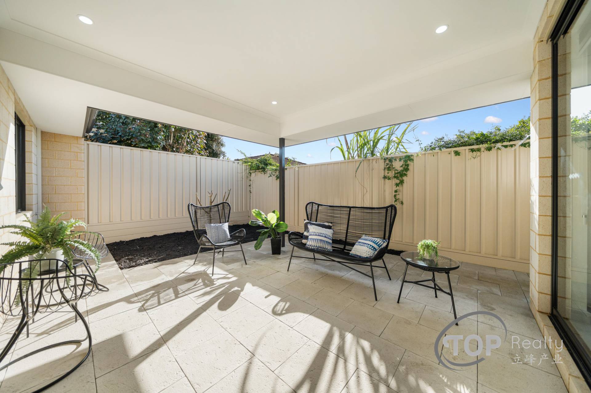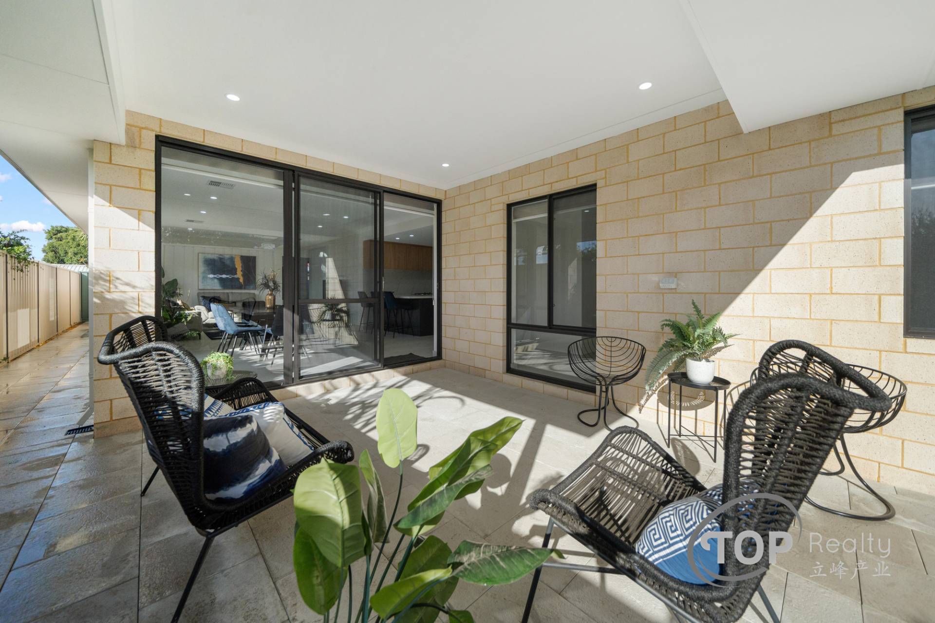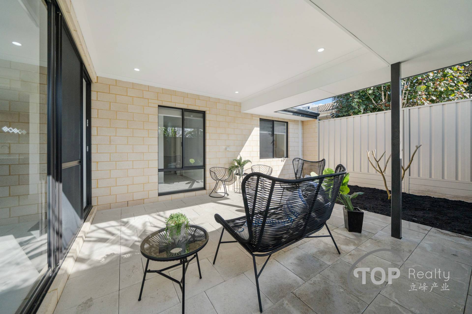Low maintenance outdoor alfresco area can be accessed through the large 28c high glass sliding door from the living area. Alfresco is paved with large premium Freo stone pavers.