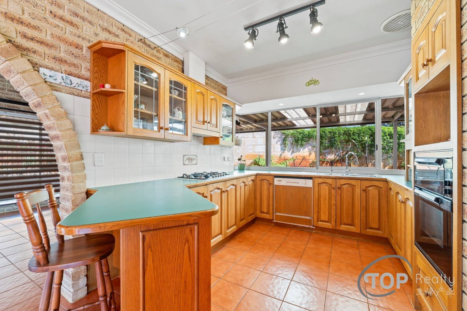 Functional kitchen features gas cook top, dishwasher & abundant cabinet storage space