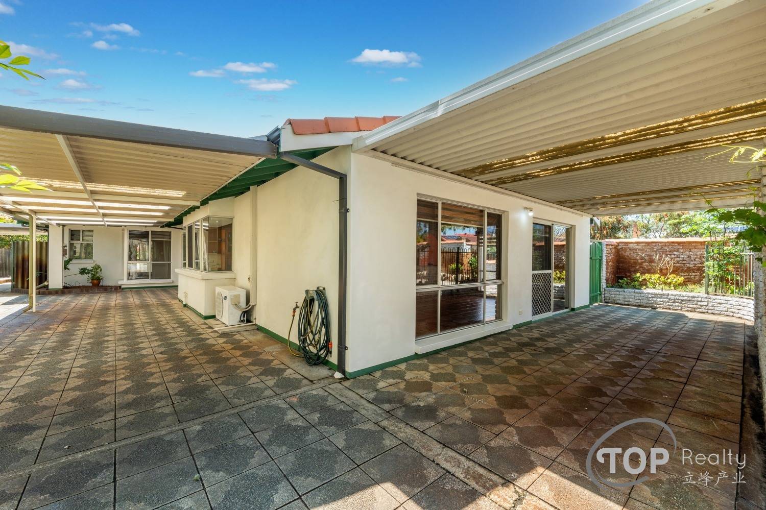 The easy backyard features a patio for outdoor living and plenty of space for your kids to play. Other features include security alarm system, solar panel system & rendered exterior walls.
