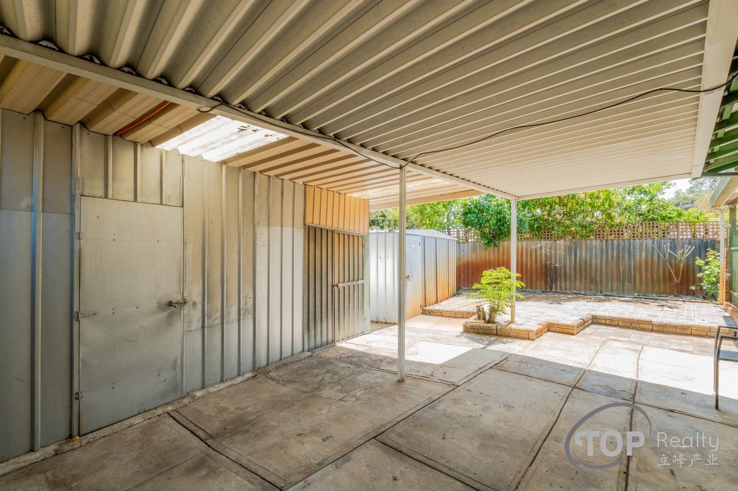Double enclosed carport; garage door recently replaced