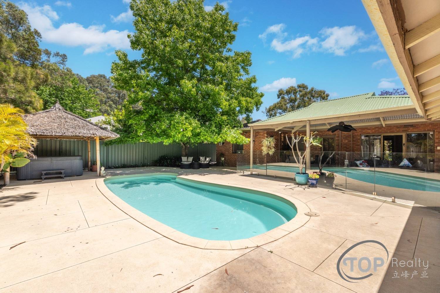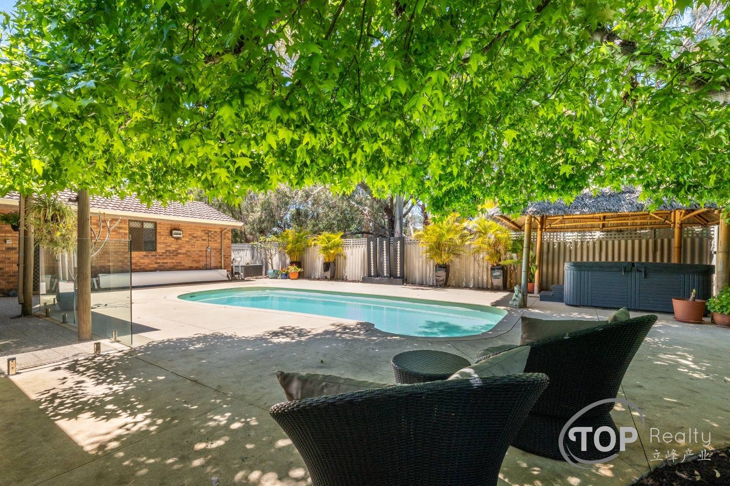 Sparkling pool with glass fencing