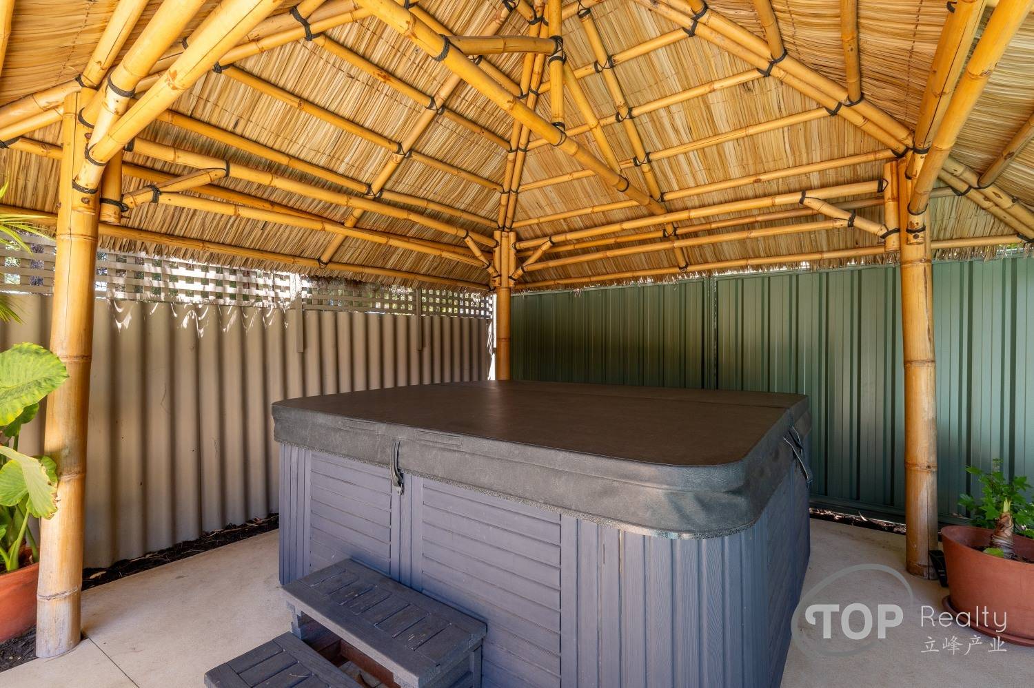 Cabana with outdoor heated spa
