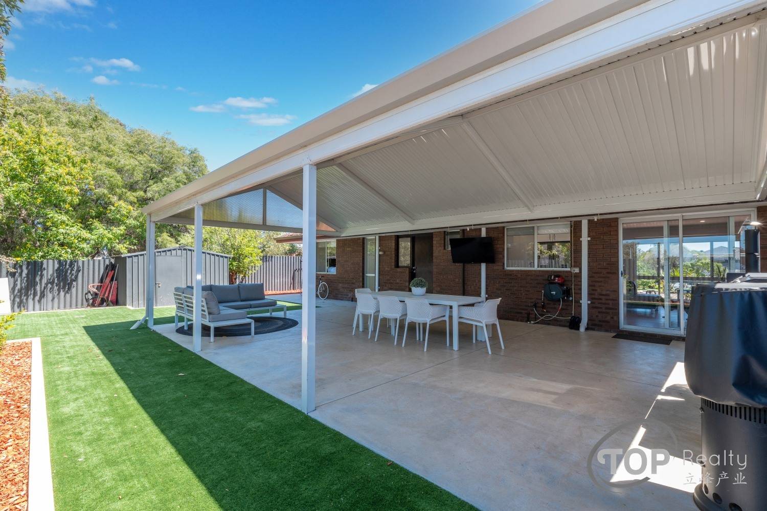The sprawling back yard has lots of space for you to live and entertain outside. The massive patio was built a few years ago and artificial lawn laid to reduce maintenance.