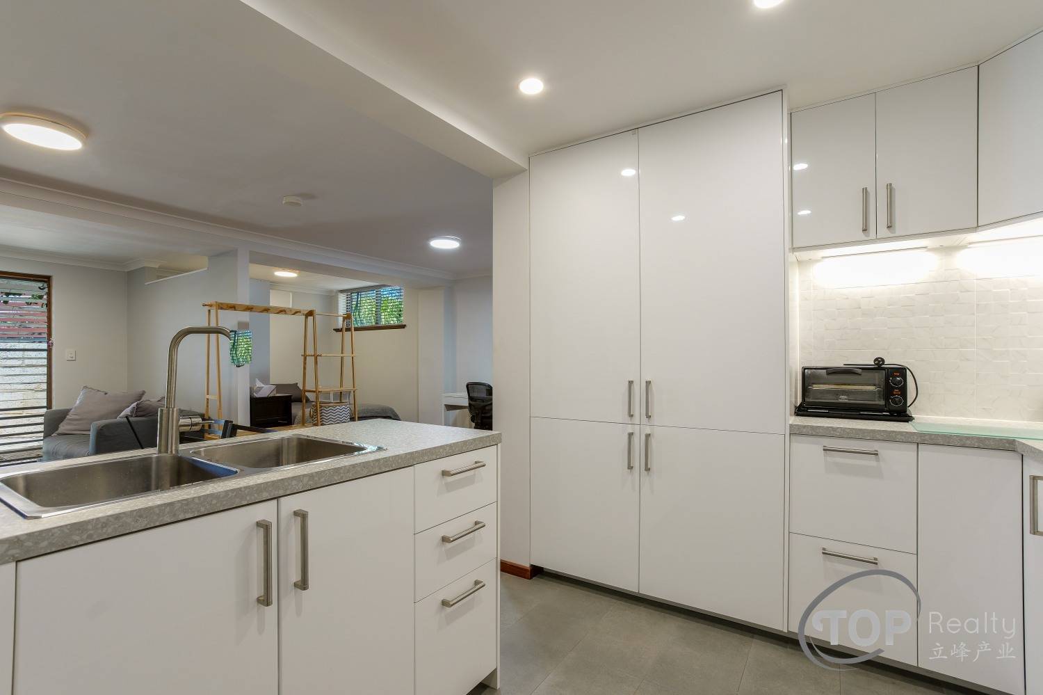 Through the main entry security grilles, the stylish double timber doors and high gloss timber flooring in the foyer create a classy entrance to the home. The custom designed home can accommodate multi-generational living. On the ground floor, the granny flat would be perfect for older family members or as a rental. The kitchen and bathroom have been renovated to exude a modern appeal. The flat has its own separate access at the front.